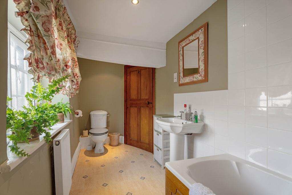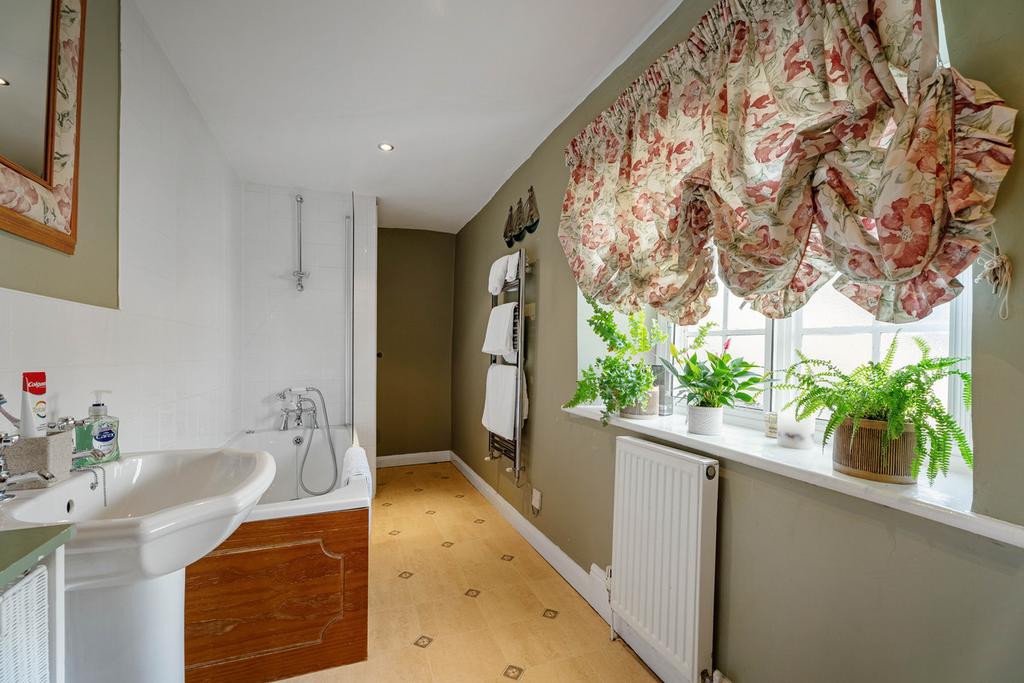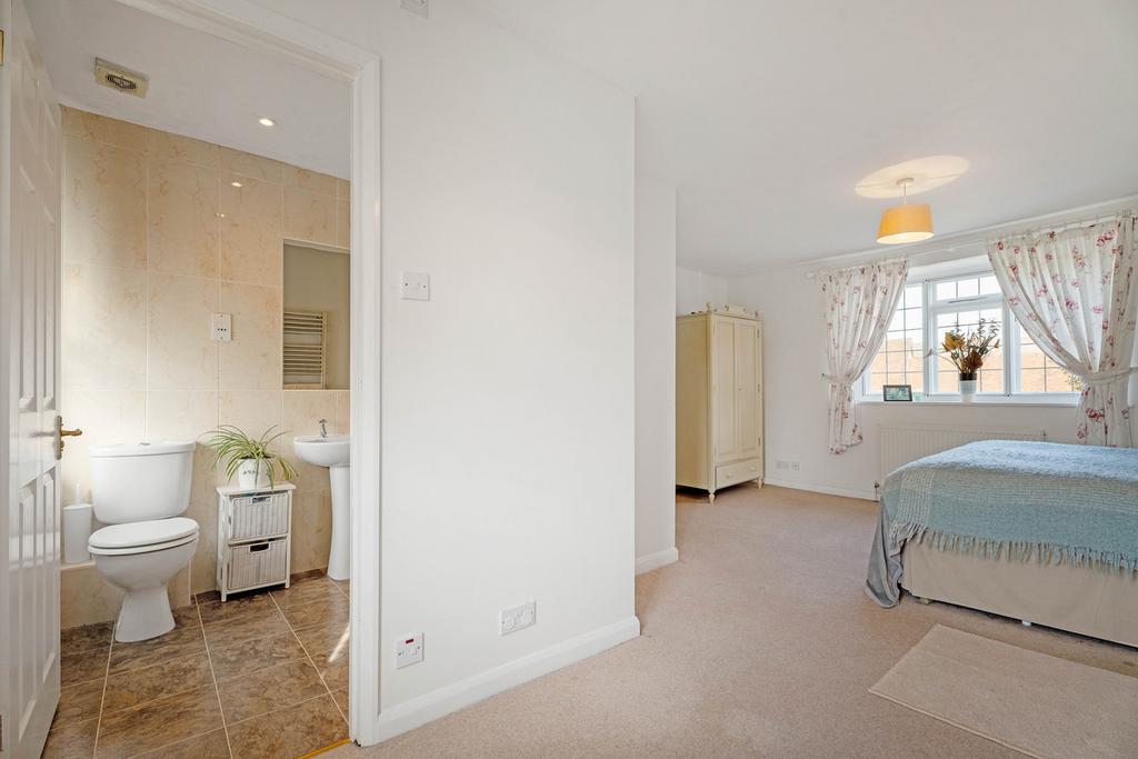 From the staircase, there is a spacious galleried landing, and straight in front of you is the family bathroom and one of the double bedrooms with original wooden flooring. There are two further bedrooms to the left. The generous dual aspect principal bedroom is at the end of the landing and has a beautifully finished en-suite bathroom.