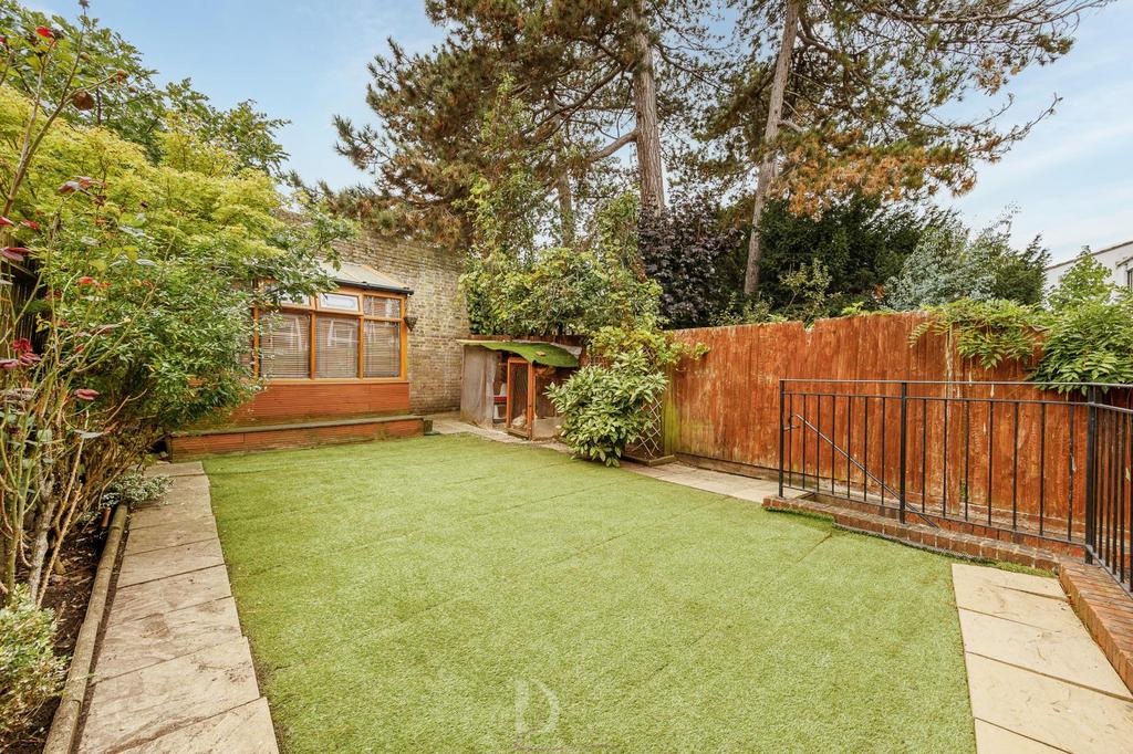 The residence offers a bright and airy reception room on the first floor and a large eat-in kitchen diner that leads out to a courtyard with steps up to a private garden extending over 30 ft. Ample storage space is provided by an internal garage that can be converted into living space should one wish. Off street parking, a ground floor WC and generous room sizes are amongst the many benefits of this family home.