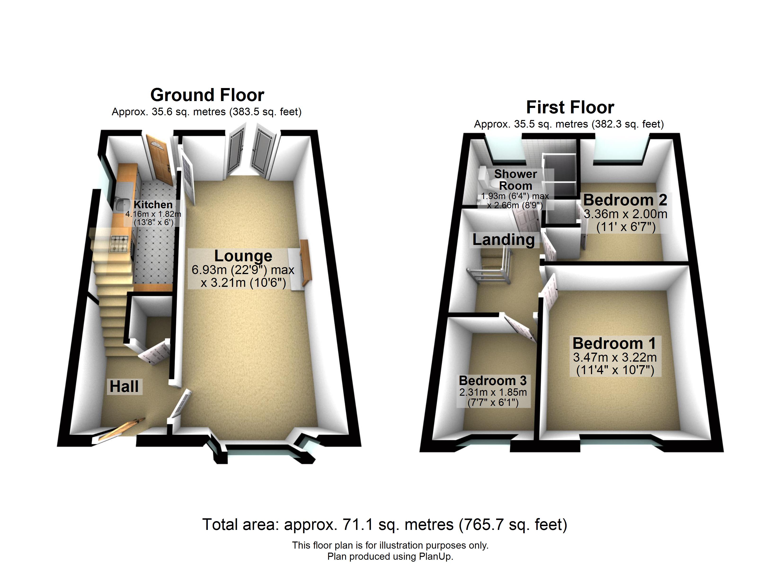 UPVC double glazed frosted door to the front elevation, wall mounted radiator, ceiling light point, storage cupboard, meter cupboard and stairs to the first floor.