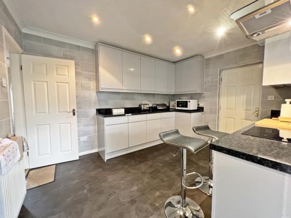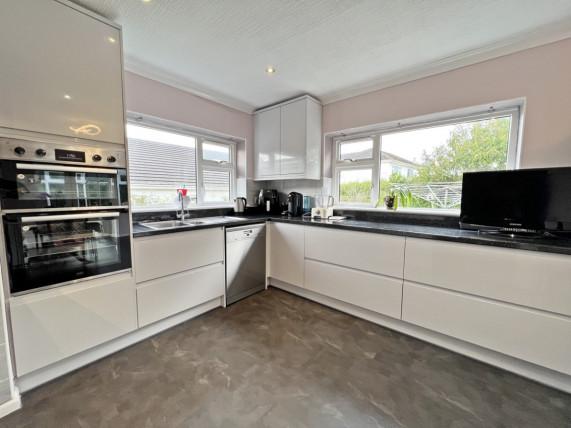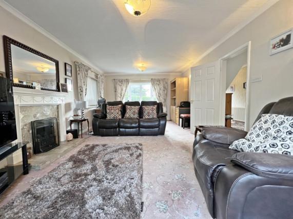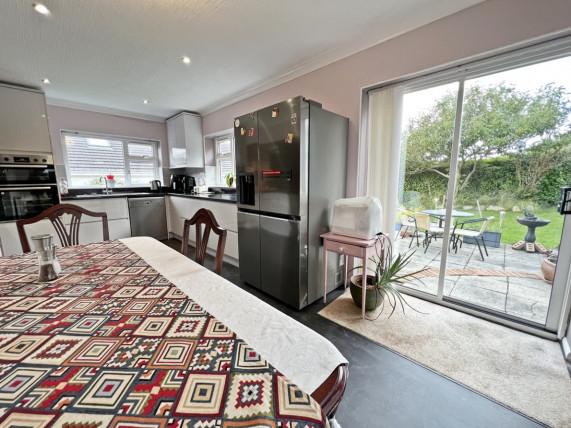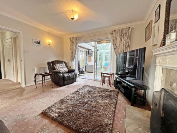 The lounge is a generous space with a feature gas fireplace, creating a warm and inviting atmosphere. Large uPVC double glazed windows offer views of the lawned garden, while a set of sliding doors lead to the charming conservatory. This airy space is bathed in natural light from dual aspect uPVC double glazed windows and doors, providing access to the rear garden.