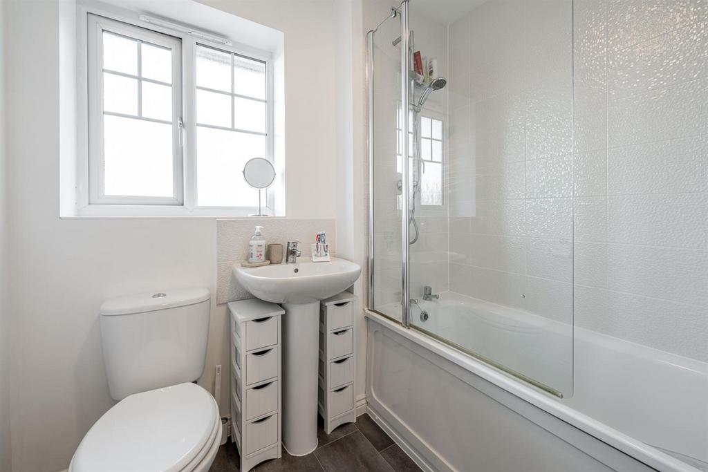 Bathroom - With a door leading from the first floor landing, bath with shower over, wash hand basin, WC, part tiled walls, extractor fan, double glazed window to front and a heated towel rail.