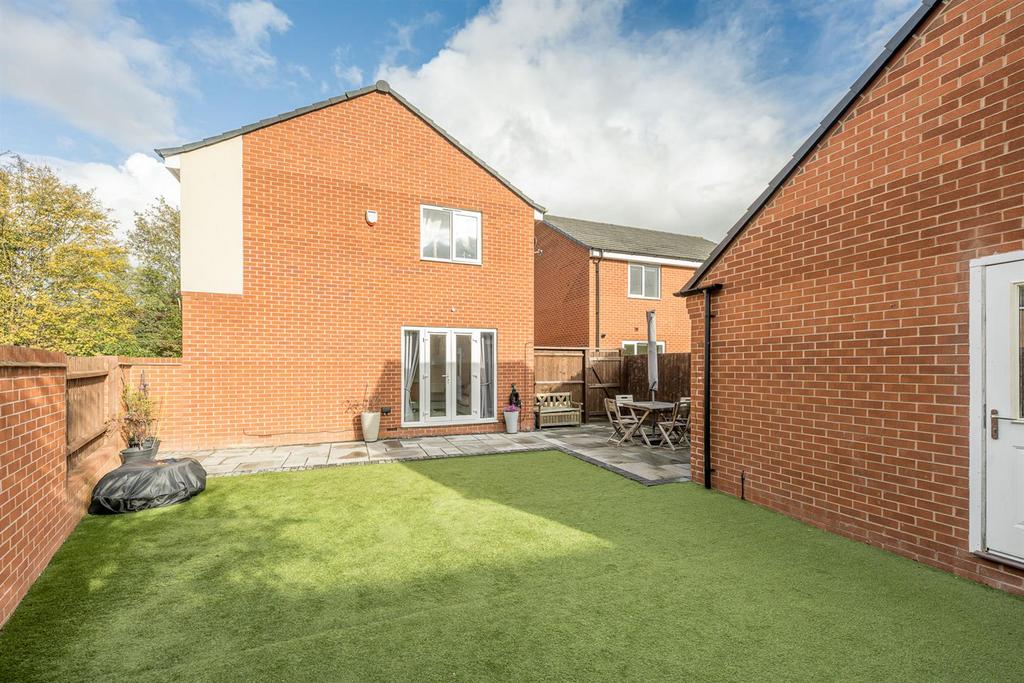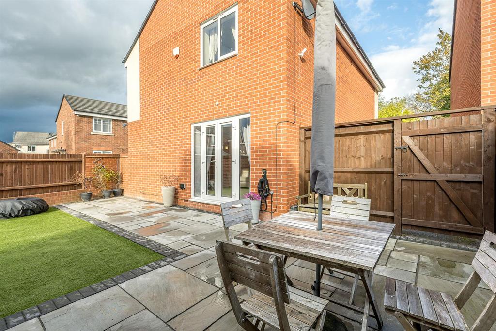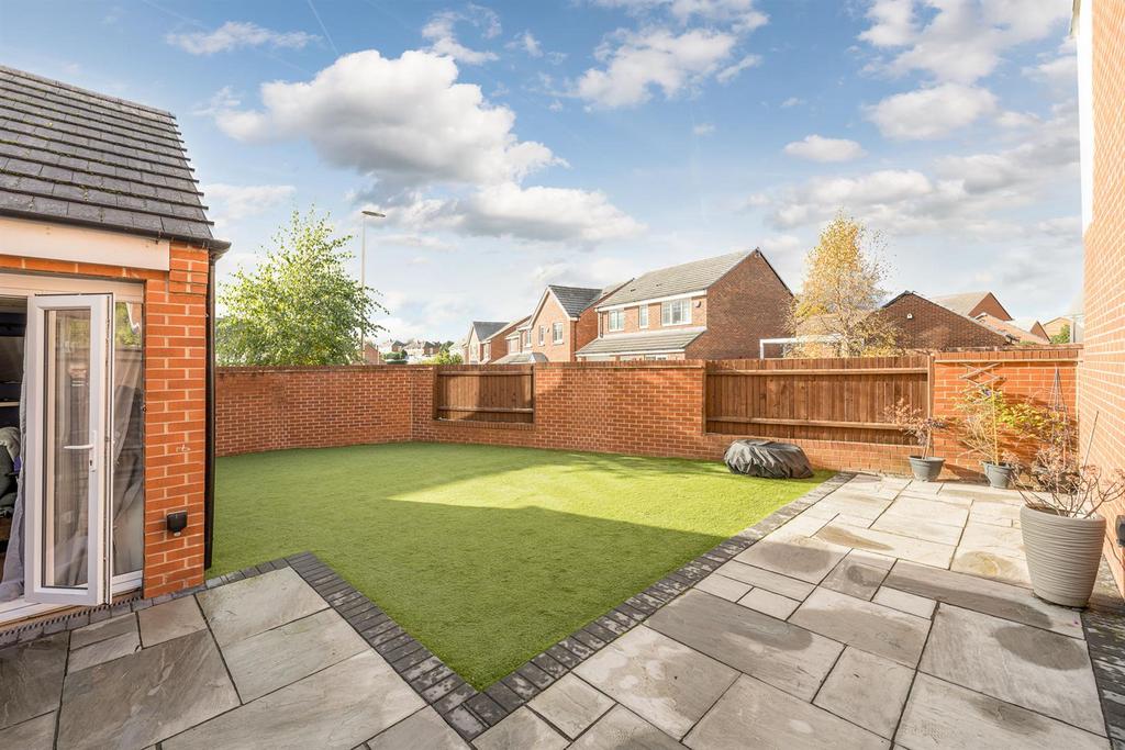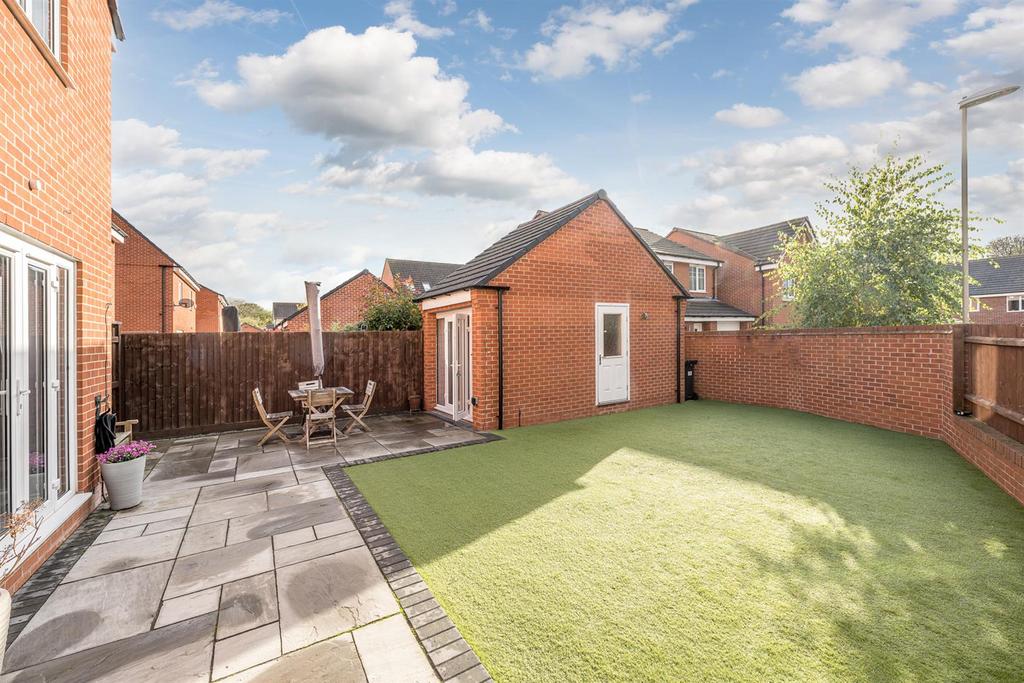 Garden - With double glazed french doors leading from the lounge to a patio area, with artificial lawn beyond, double glazed french doors leading to office/gym and gated side access to the driveway.