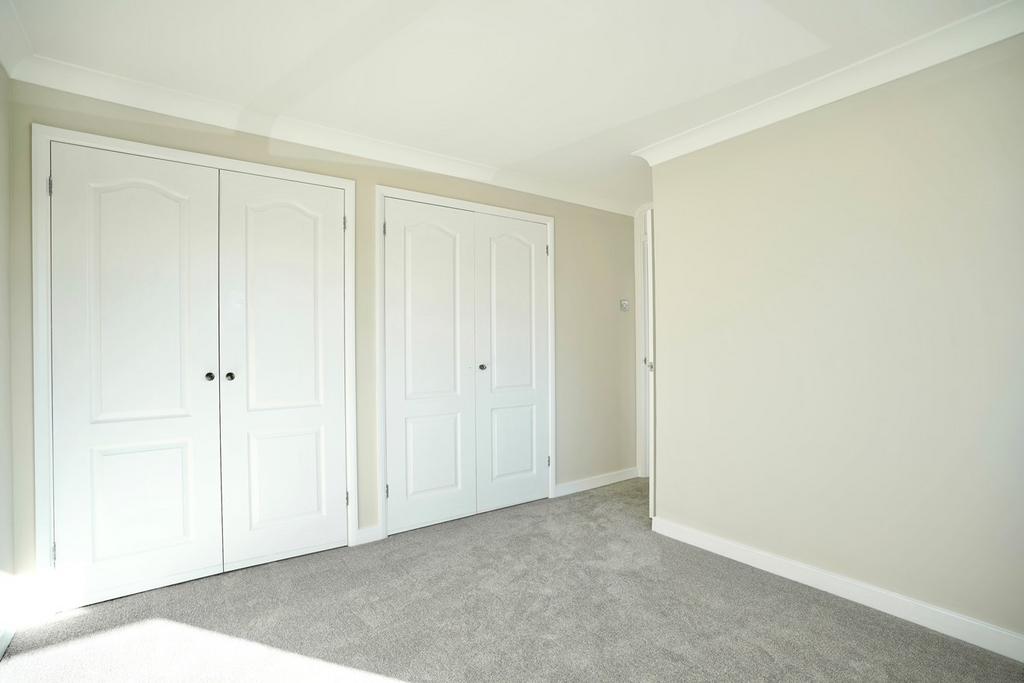 UPVC window to front aspect, double panel radiator, extensive wardrobe range incorporating two double with hanging and shelving, coving to ceiling.