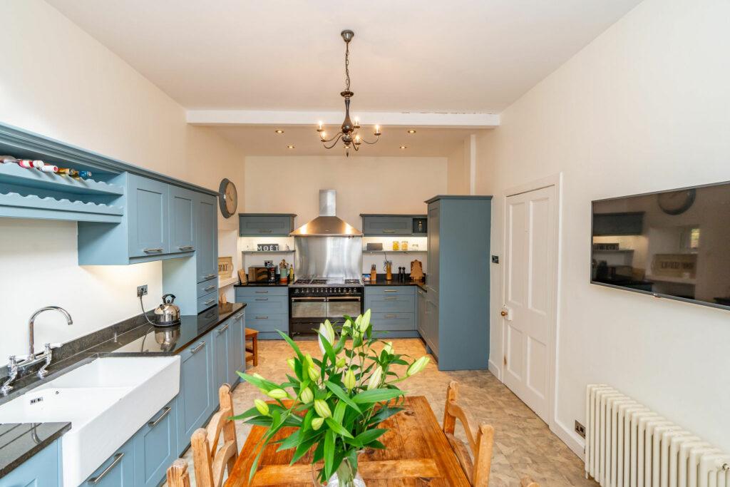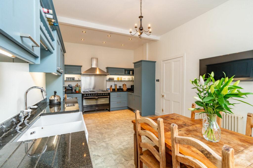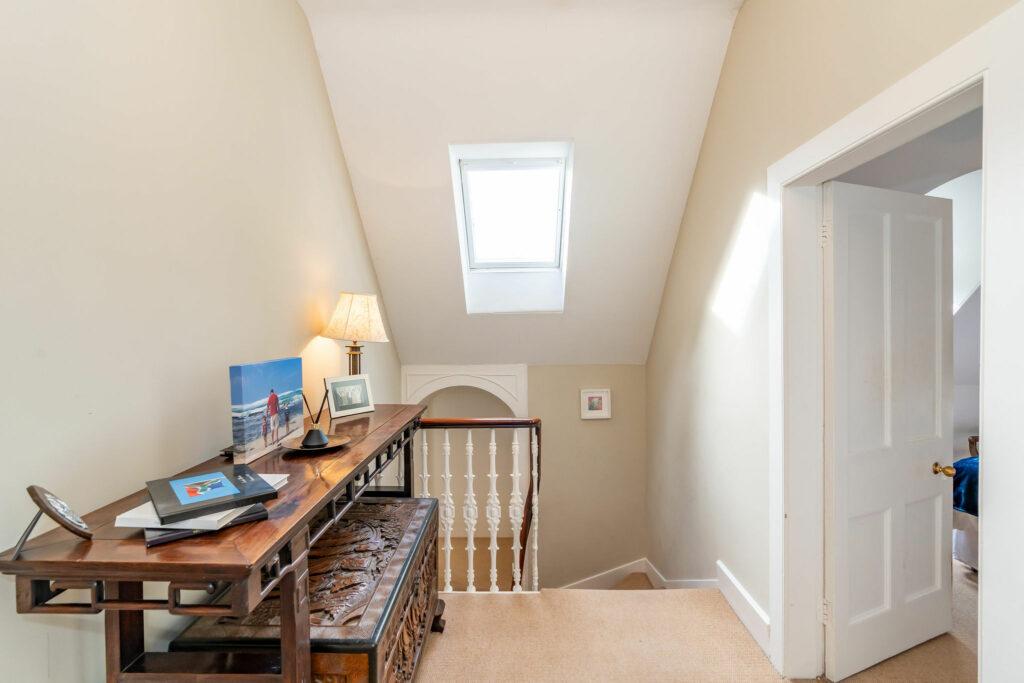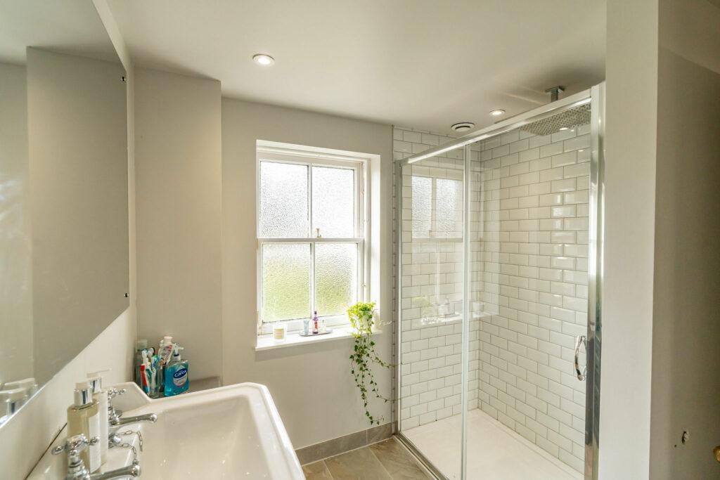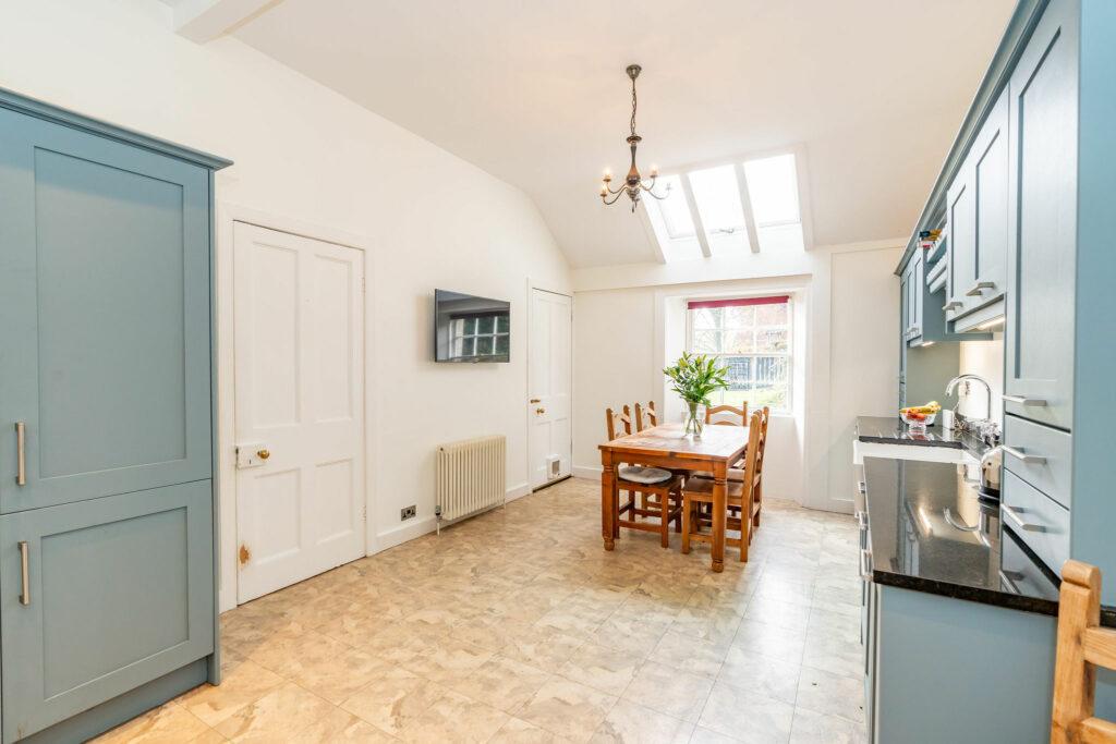 Upon entering through the charming, tiled hallway, you are welcomed into the main house, where a grand living room/sitting room awaits. Adorned with a multi-fuel fire and breathtaking original cornicing, this space offers panoramic views of the village. The lower level features a separate dining room/home office, complete with a second multi-fuel burning stove. The expansive family dining kitchen, perfect for entertaining, seamlessly connects to the rear patio. Rounding out the ground floor are a convenient WC and utility room.