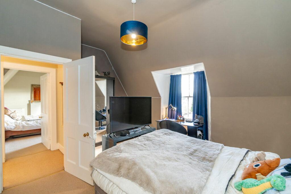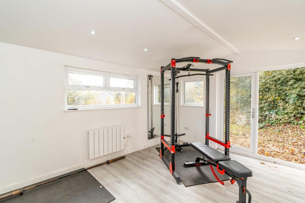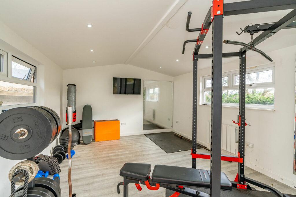 Upstairs, a modern family shower room complements four spacious double bedrooms and a generously sized storage cupboard. As an added bonus, a separate gym, housed in a contemporary, insulated building with power and WIFI, presents a versatile space that could easily transform into a home office. The garden is thoughtfully divided into upper and lower lawned areas, with a captivating patio at the rear of the house, providing a delightful retreat. The Old Rectory is heated by LPG.