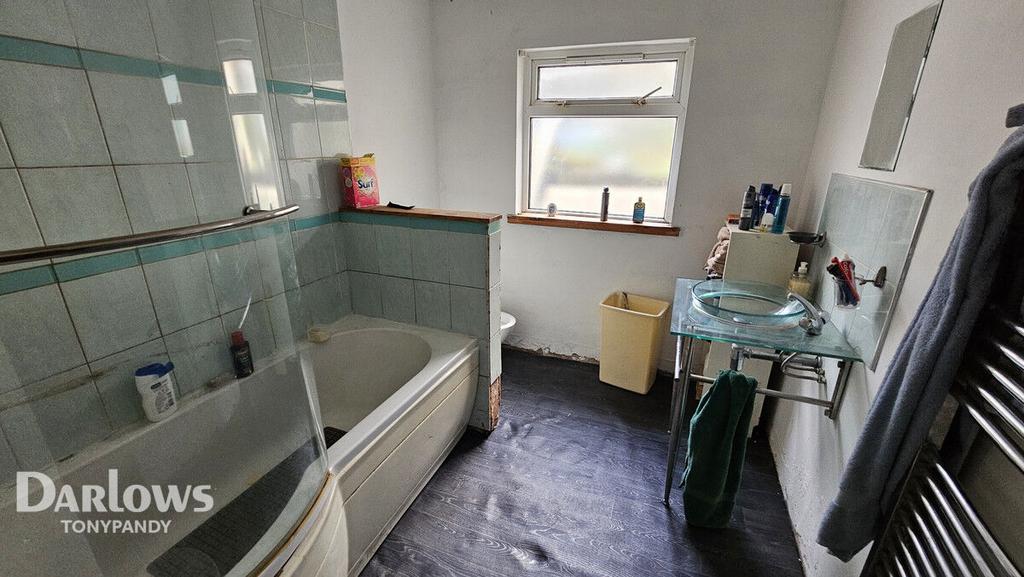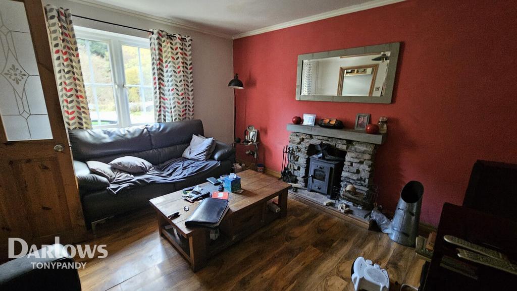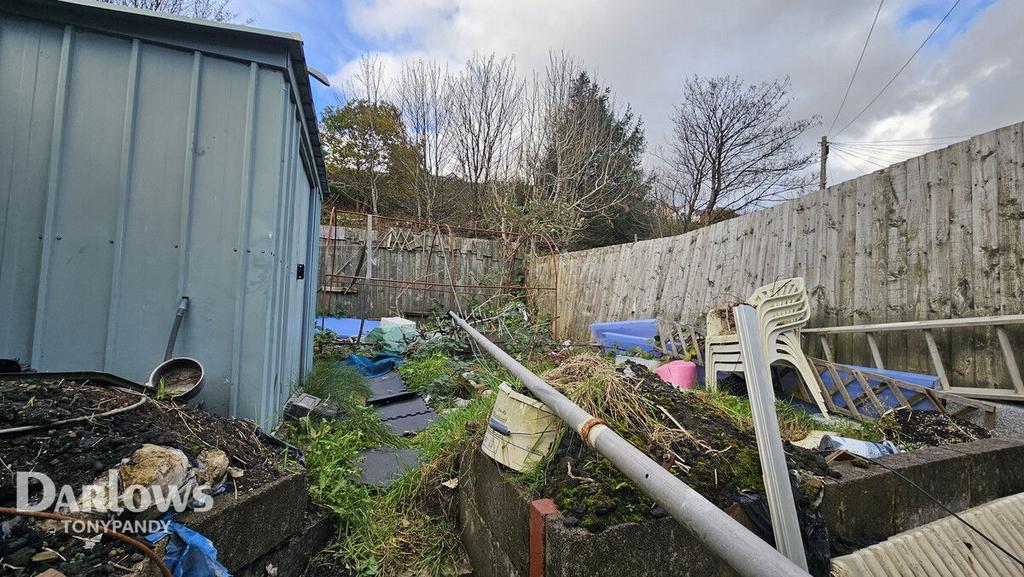 To the rear, enclosed garden in need of works with rear access . To the front the property is fronted onto the pavement with open green area opposite, river and open open views of the Bwlch mountain .