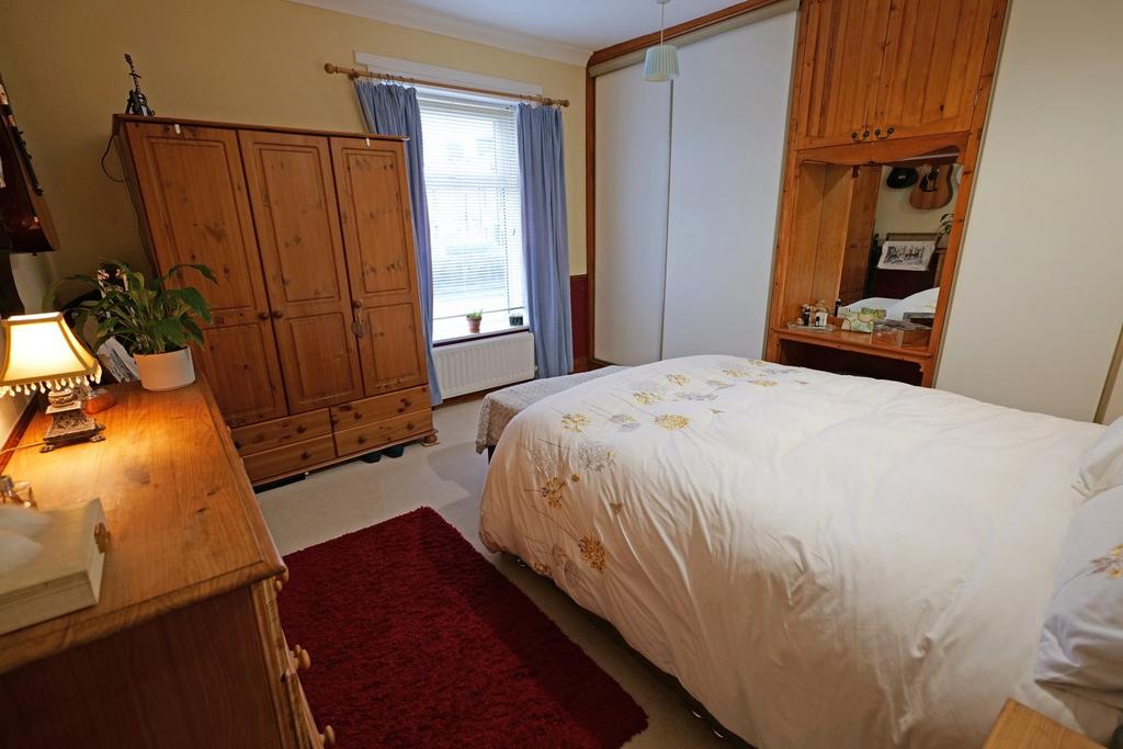 This generously proportioned double room enjoys a pleasant open aspect/views from the front and has built-in wardrobes, which extend the length of one wall and have space saving sliding doors, incorporating a central vanity area, with a storage cupboard above. PVC double glazed window, radiator and dado rail.