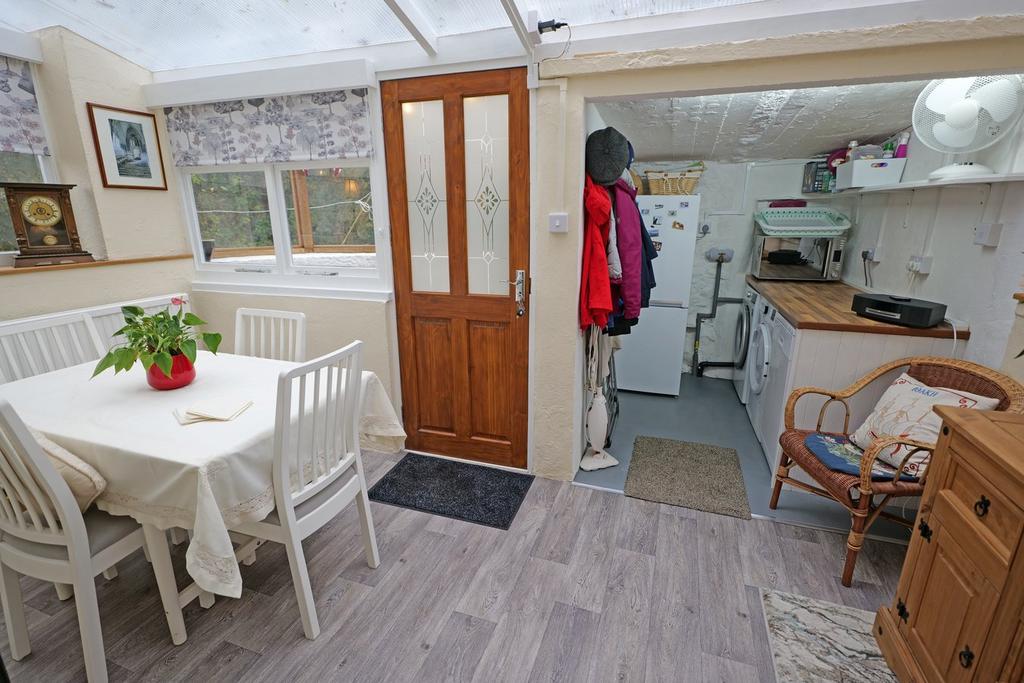Recently refurbished , this particularly appealing addition to this lovely home allows plenty of space for a dining table and has an extremely useful utility area with a wood finish laminate worktop, plumbing for a washing machine and space for a condenser tumble dryer. There is also a radiator, two windows, electric power and light, a cold water tap and a half glazed external door.