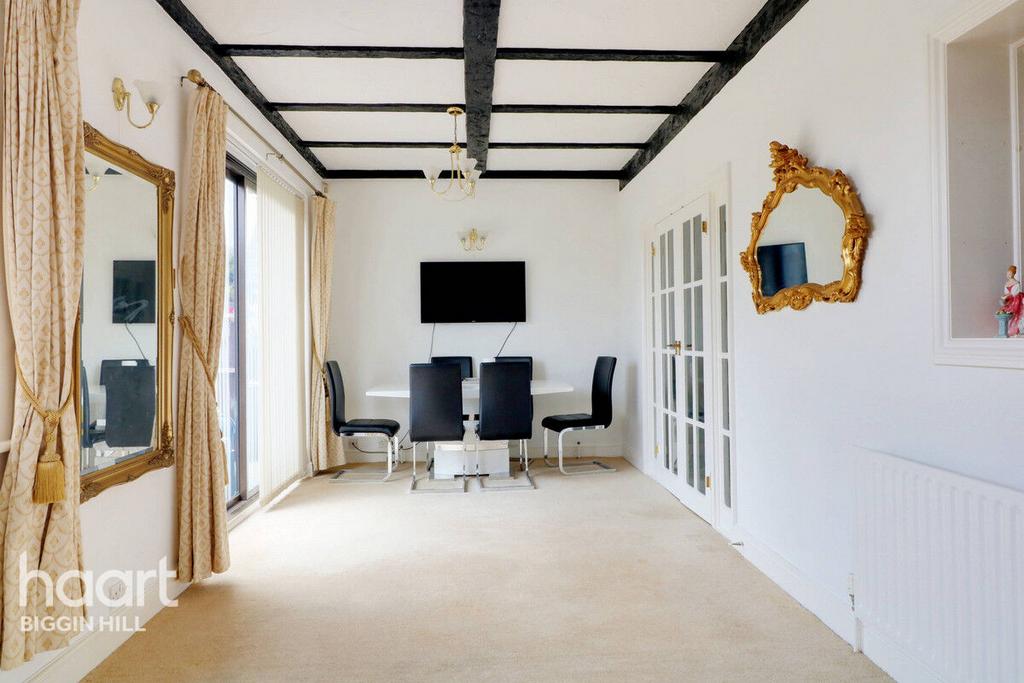 Two radiators, double glazed window to front, feature brick chimney breast with inset living flame coal effect gas fire, three radiators, double doors opening to dining room