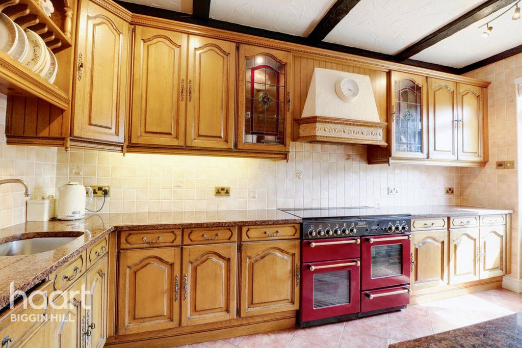Fitted in a matching range of oak style wall and base units with work surface over with inset stainless steel sink unit with mixer tap, plumbing for dishwasher, fitted gas range cooker with extractor hood, space for fridge/freezer, radiator, double glazed doors and window to rear