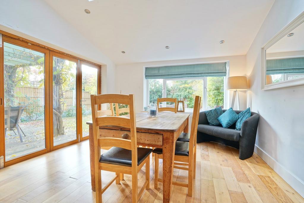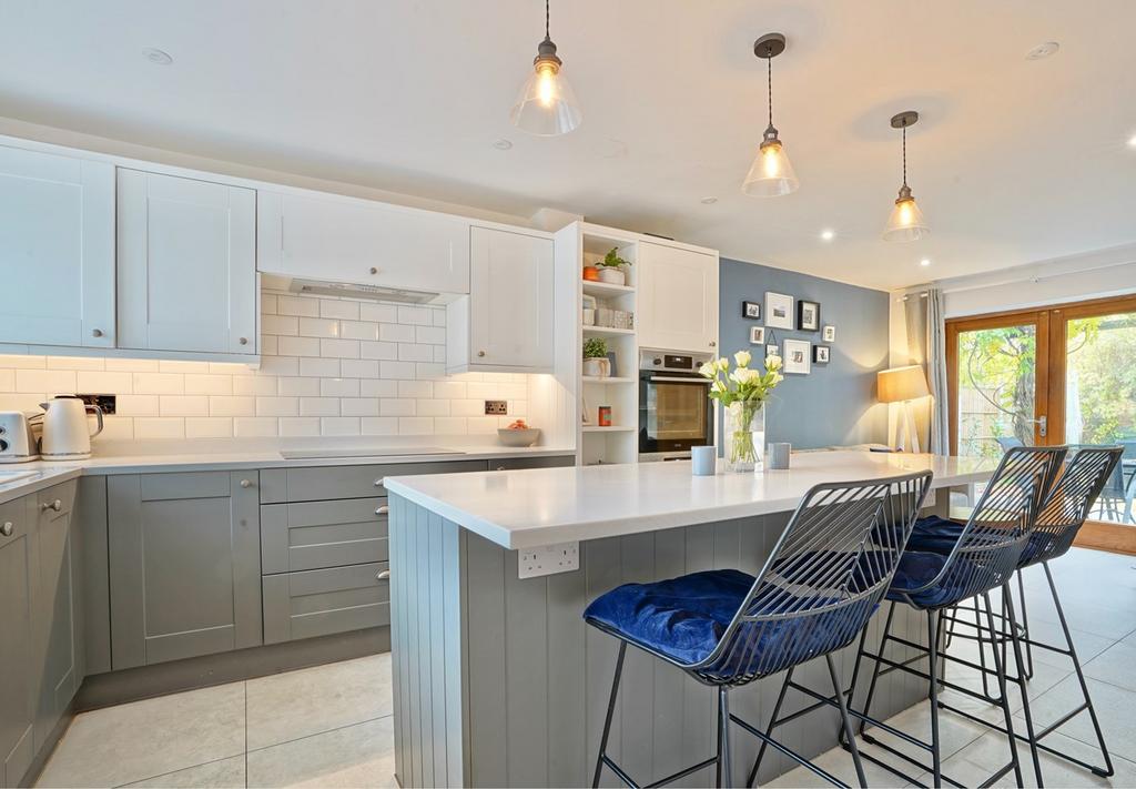 This nicely located, non estate family home offers extended four bedroom accommodation with en suite to principal bedroom and versatile ground floor space providing three/four reception rooms. The stunning double aspect kitchen has been recently re-fitted and views beautifully. The gardens are private and mature with a westerly facing rear garden and parking provision for four vehicles. All within a short walk of the Chinese Bridge and town shops.