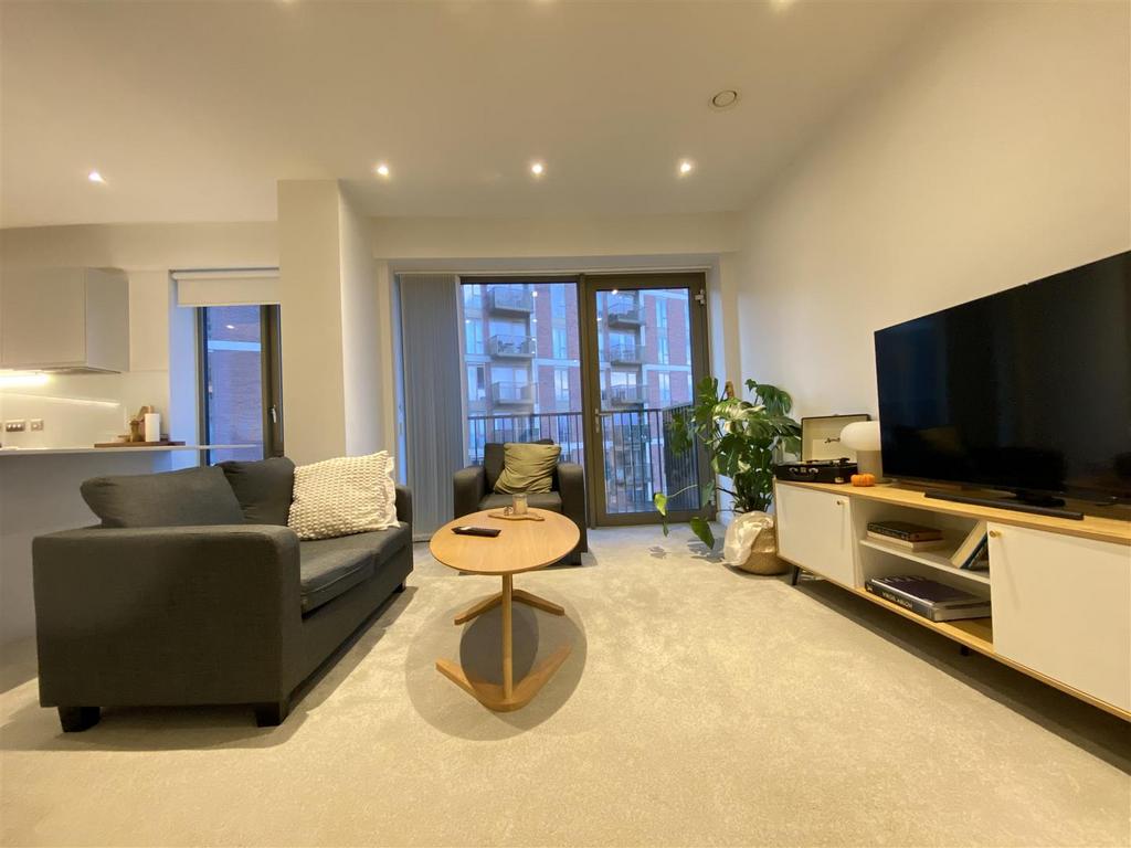 Living/Kitchen/Dining - Open plan living area, with modern kitchen. floor to ceiling windows throughout, leading on to a balcony with views of Peel Park,