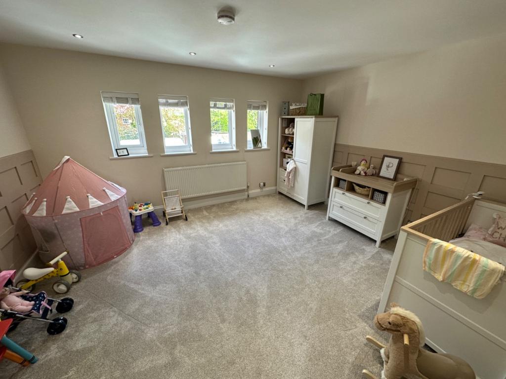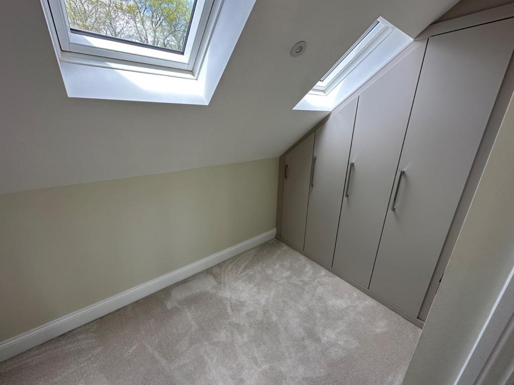 Stairs rise from the first floor landing to the second floor master suite. This fabulous space comprises: the master bedroom itself (with a Juliet balcony overlooking the rear garden and adjacent green space,) a contemporary ensuite shower room and a generous amount of built in storage space.