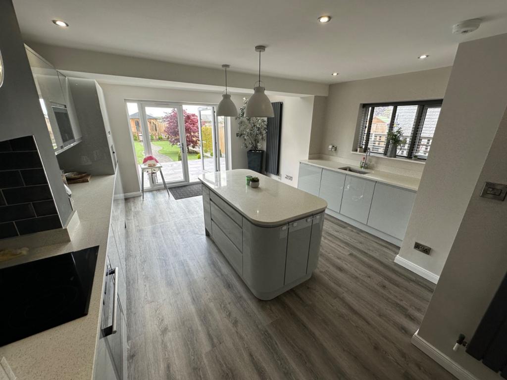 Upon entering the property, you are greeted by a light and airy entrance hall, which in turn provides access to all of the principal accommodation - in brief this comprises: a spacious reception room (complete with a large bay window and a media wall,) a downstairs w/c and to the rear elevation - a fabulous, open plan, dining kitchen, complete with built in appliances, an island and patio doors opening out onto the substantial rear garden.