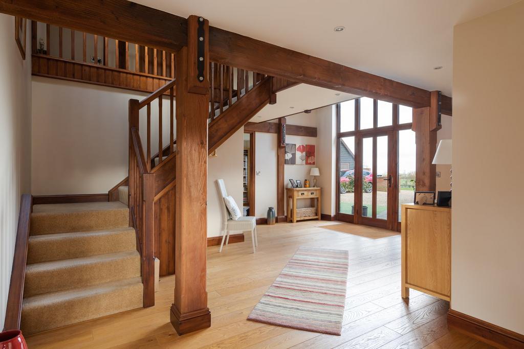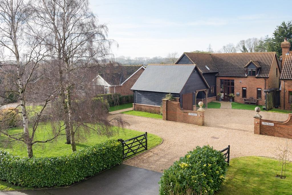 Three beautiful silver birch trees set in the front lawn welcome you to The Barns, which lie well back from the country lane through double 5-bar gates. A gravel parking area keeps parked cars away from the house, while you can still drive through to load and unload, or for access to the garage and cart lodge. Everything has been considered.