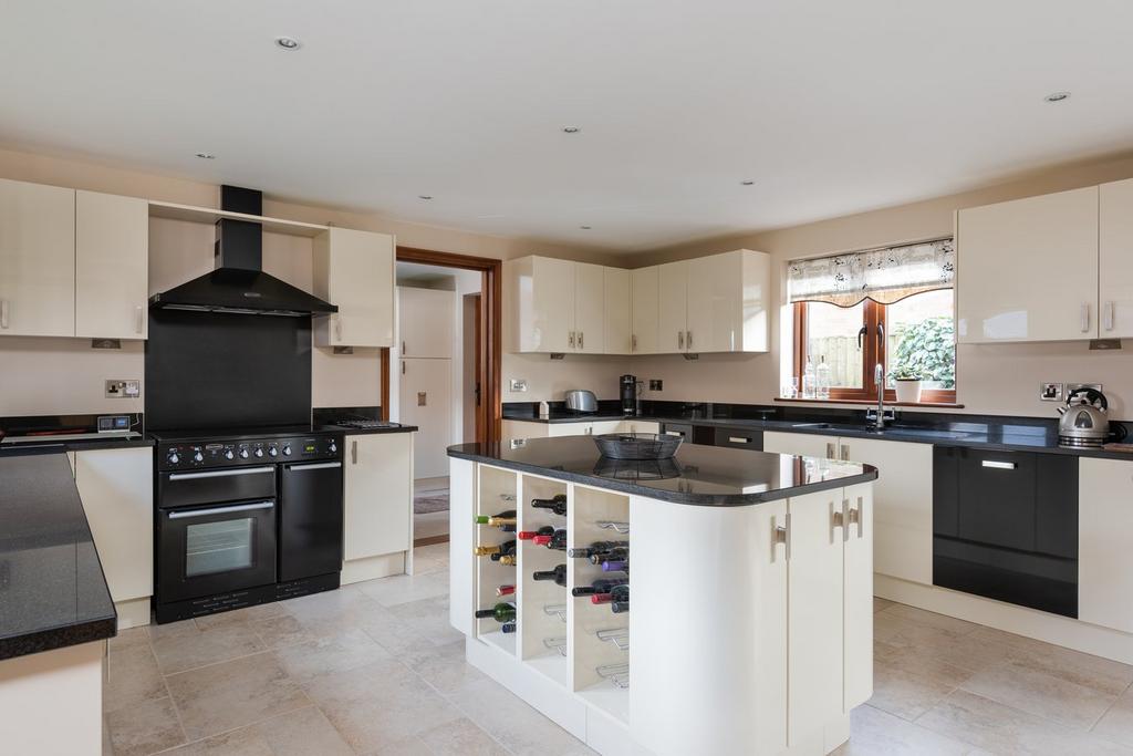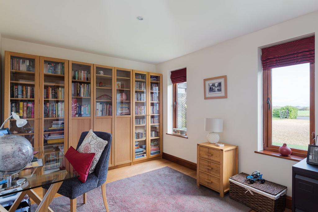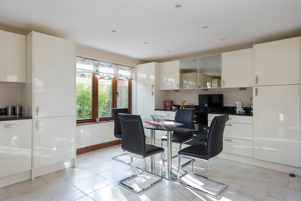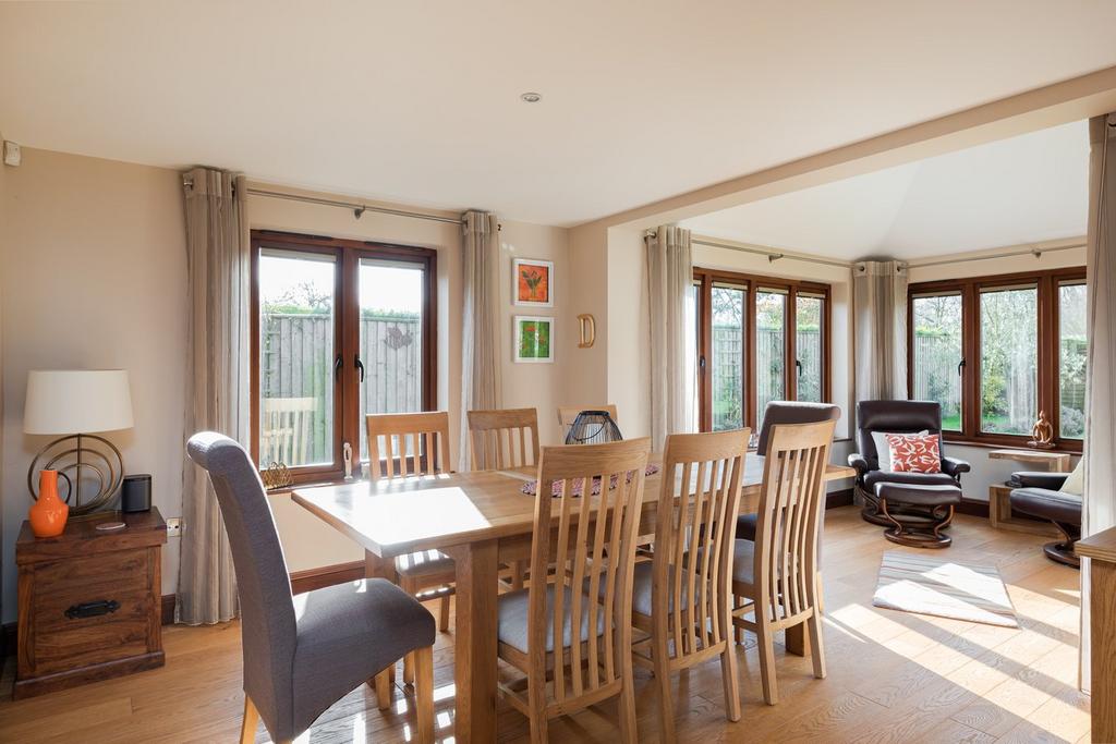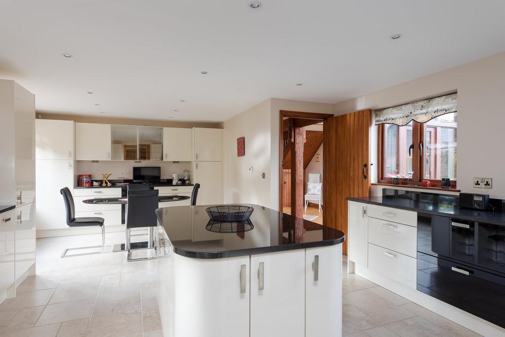 And what a lovely dining room, open to the hall and on to the garden room for relaxing with after-dinner coffee, or during the day with full view of the garden. Imagine happy family gatherings around the breakfast table in the kitchen and plucking a bottle from the island wine rack to enjoy a pre-dinner drink while chatting to the cook. So much space, no-one getting under each other’s feet.