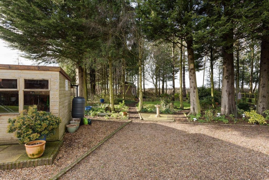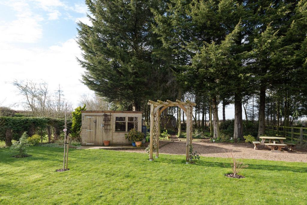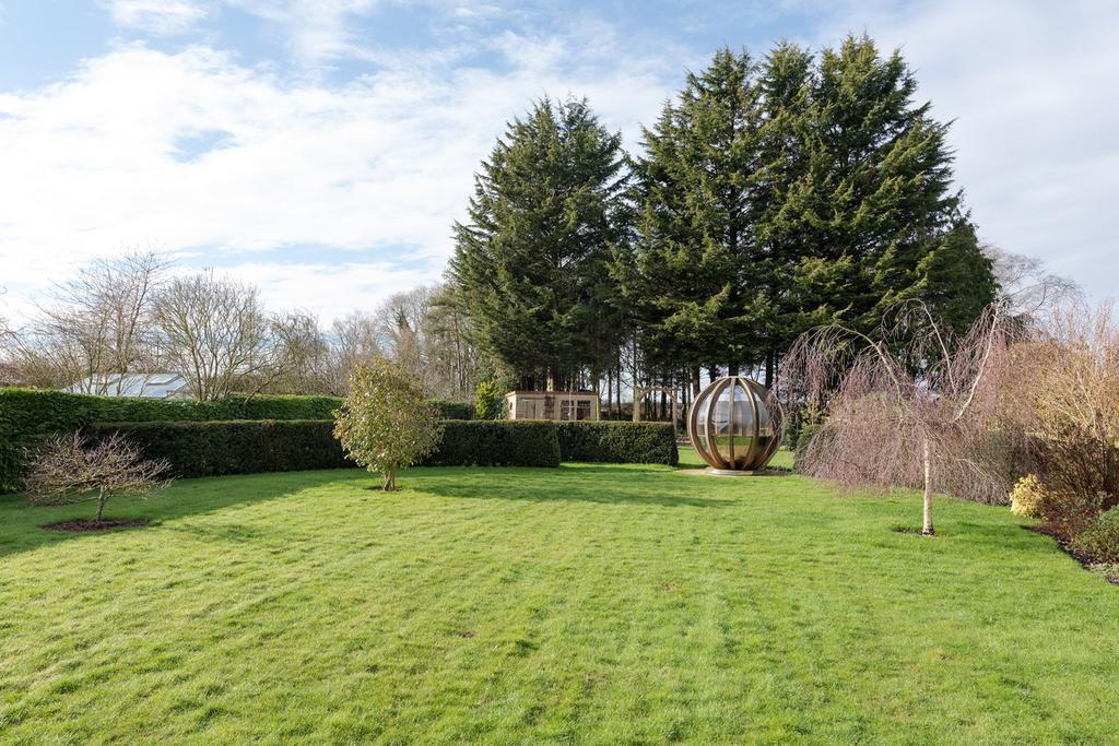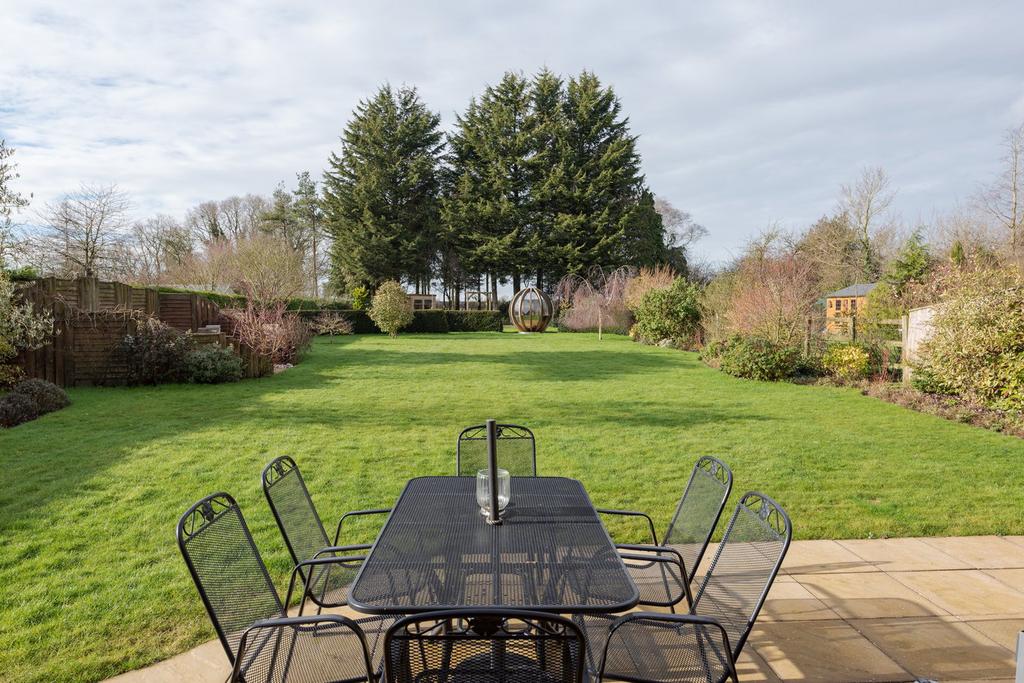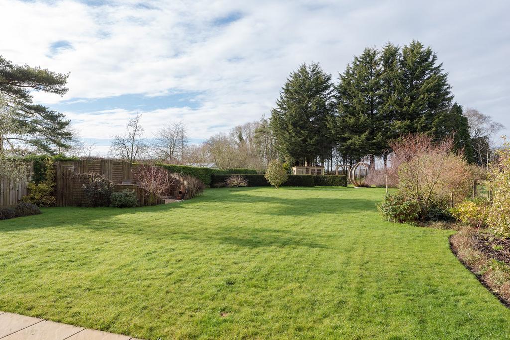 Yew hedging separates the main lawn from another lovely seating area, and onward to a little copse, including silver birch, fir trees and horse chestnut, ready to spring into life with a beautiful carpet of woodland flowers. Such an exciting area for children, with only fields beyond.