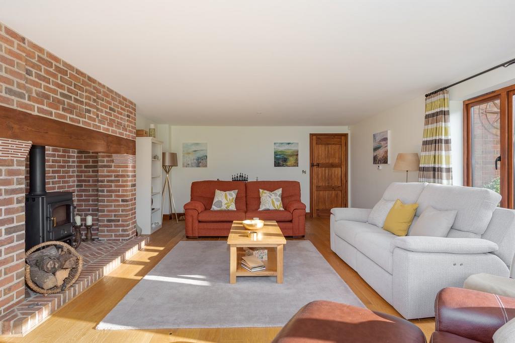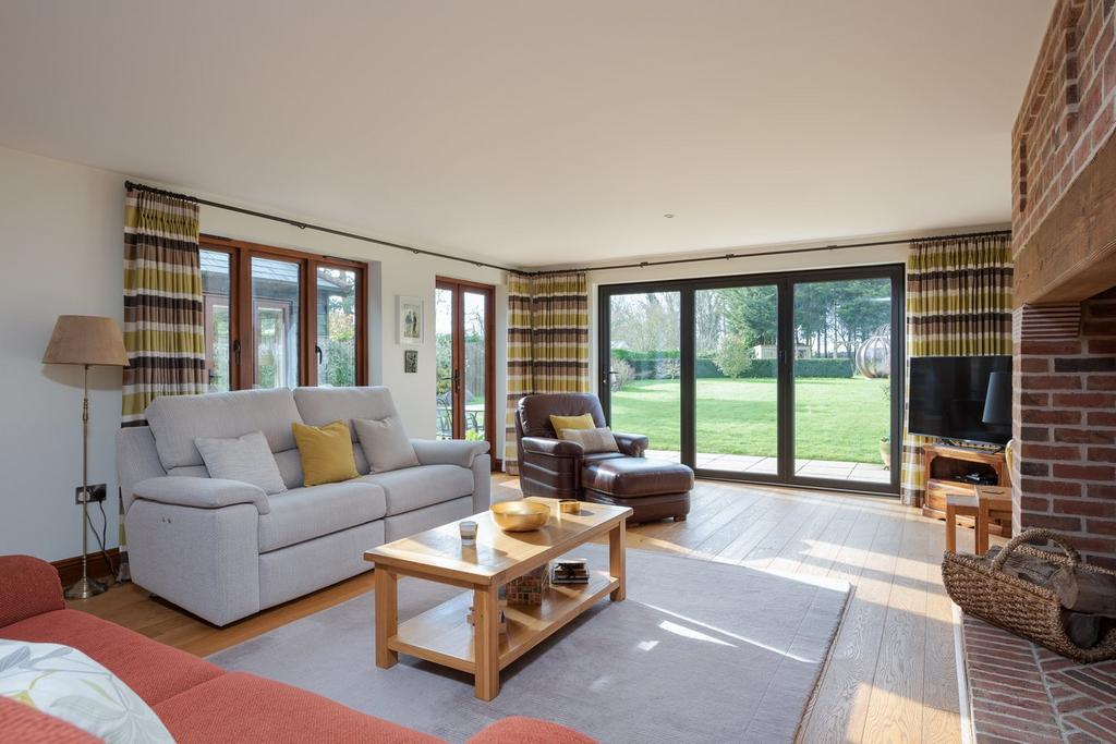 Try walking into the sitting room without saying ‘wow’ – imagine how cosy it is in front of the beautiful inglenook fireplace, logs ablaze in the top of the range woodburner. Imagine the bifold doors open to the terrace in warmer times, summer garden party in full swing. Superb!
