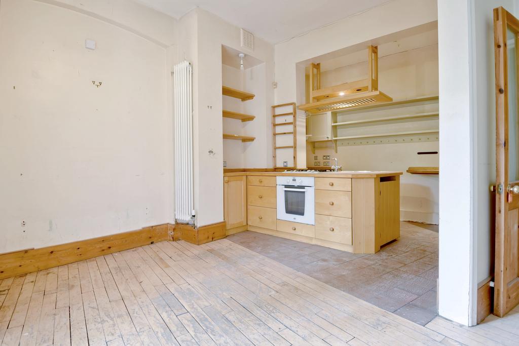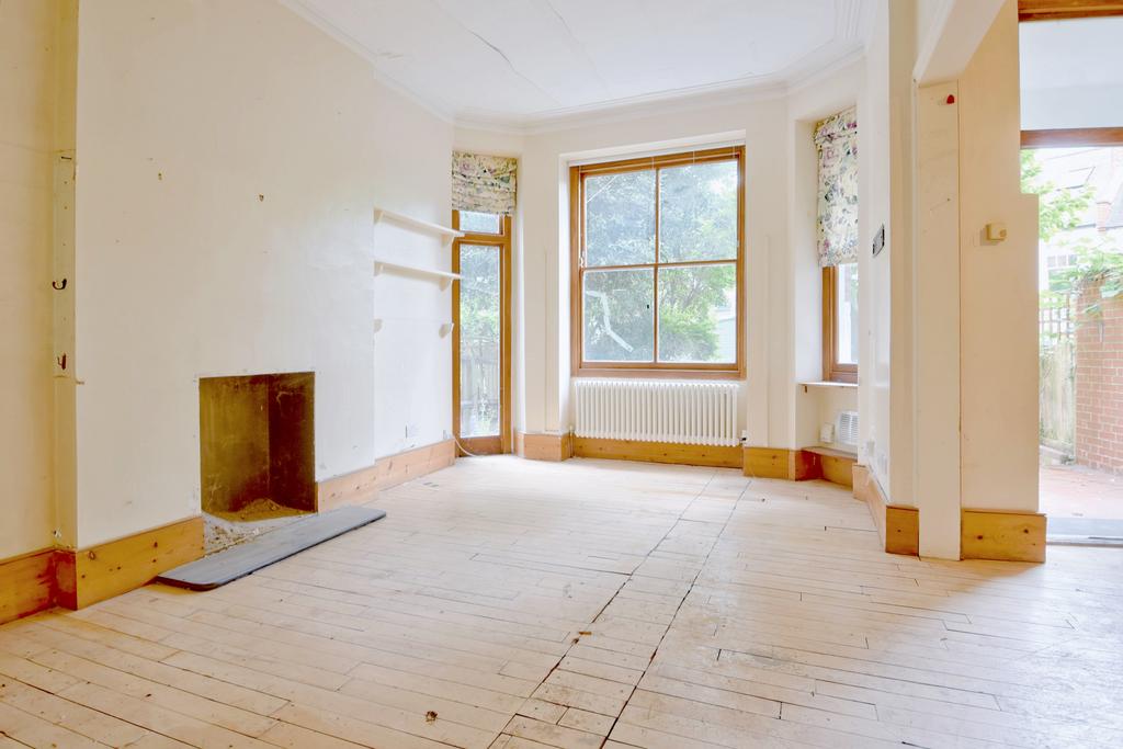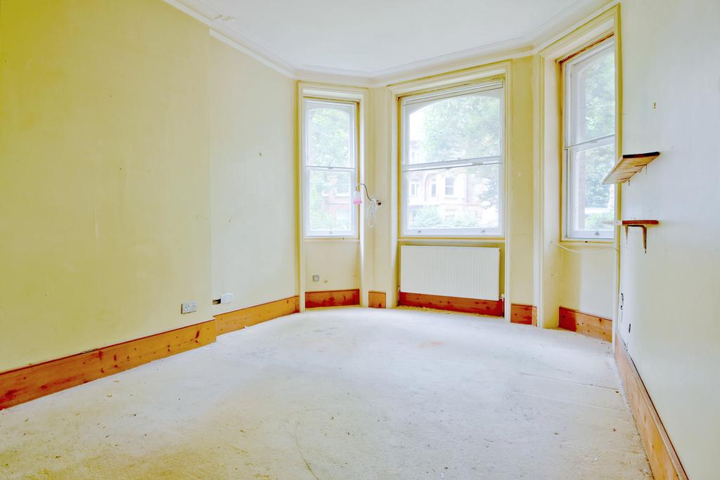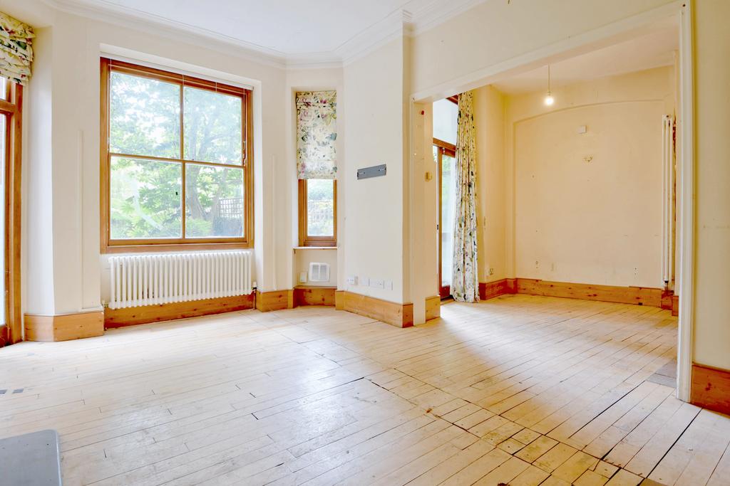 A very spacious ground floor three double bedroom mansion flat requiring modernisation and featuring a large private garden ideally located in this sought after tree lined enclave moments from Hampstead Heath. The flat enjoys spacious, well planned open plan accommodation including a large reception room to the rear which opens open to a dining room and kitchen and overlooks the garden, The flat requires updating and presents purchaser with an ideal opportunity to create an impressive home designed to their own style and specification. Hampstead Heath is moments away and an excellent selection of shops and convenient transport connections are within easy reach at Gospel Oak and Kentish Town.
