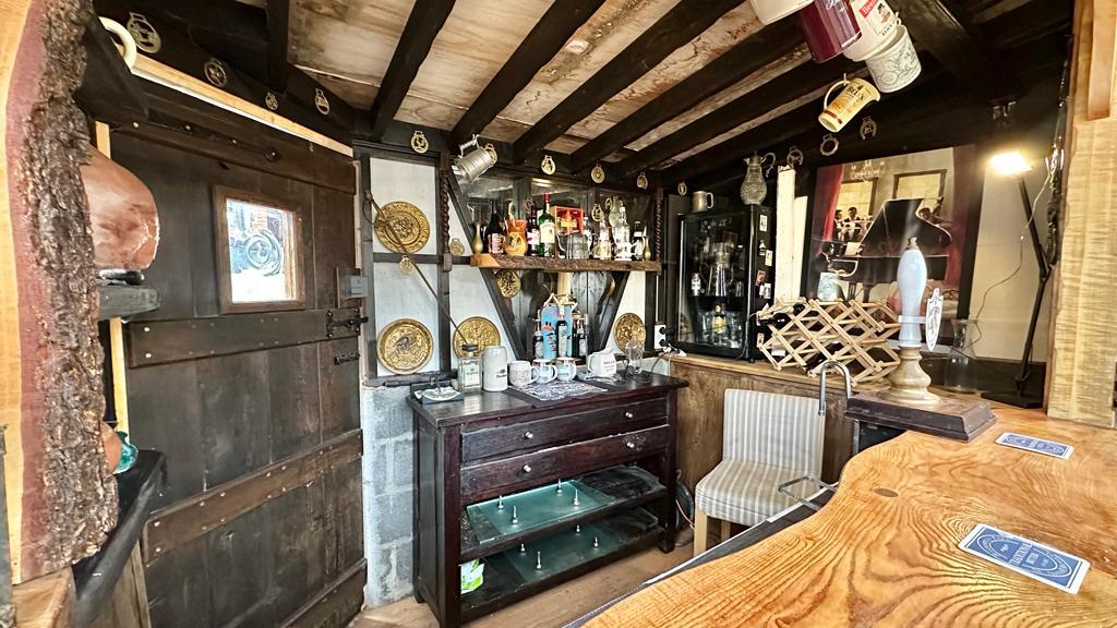 The well-maintained garden boasts a custom bar, perfect for entertaining guests, and a large driveway for multiple cars.