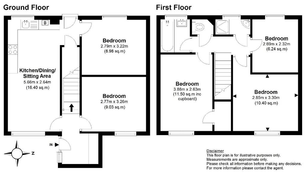 Ground floor: hall, fully equipped kitchen with washing machine, and through sitting area; two bedrooms