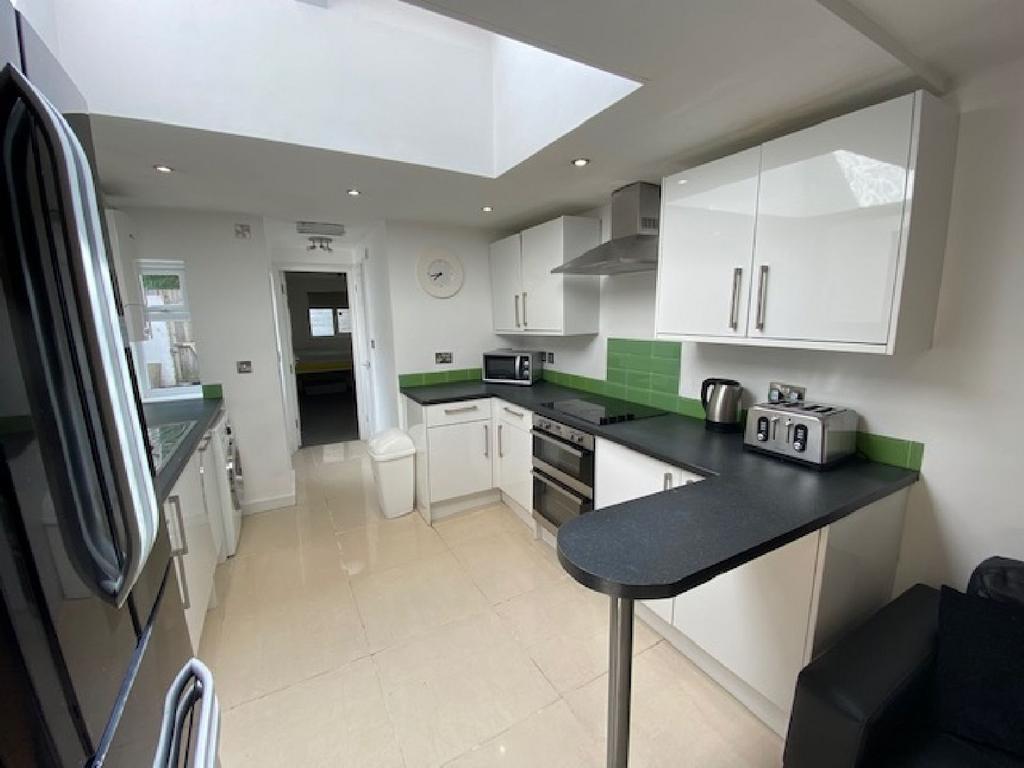 This modern property offers six spacious double bedrooms, including 4 with en-suite bathrooms, perfect for comfortable living. The heart of the home is an open-plan kitchen and living area, designed for socializing and relaxation. With a large wall-mounted TV, surround-sound speakers, and plenty of space, it's the ultimate spot for pre-drinks or movie nights! The kitchen is fully equipped with premium appliances, including a dishwasher, washer/dryer, and a sleek American-style fridge freezer.