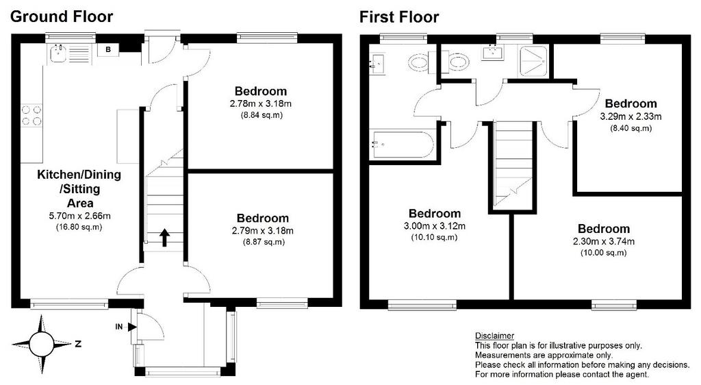 First floor: 3 bedrooms; bathroom with shower and WC; separate shower room with wash basin and WC