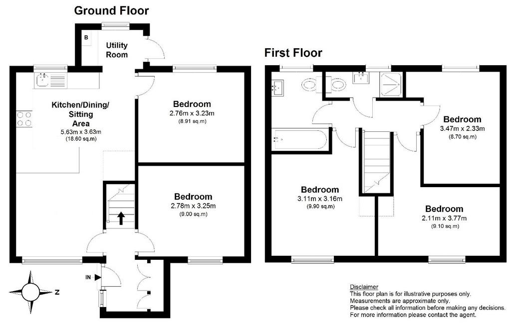 First floor: 3 bedrooms; bathroom with shower over bath, basin and WC; separate shower room with basin and WC