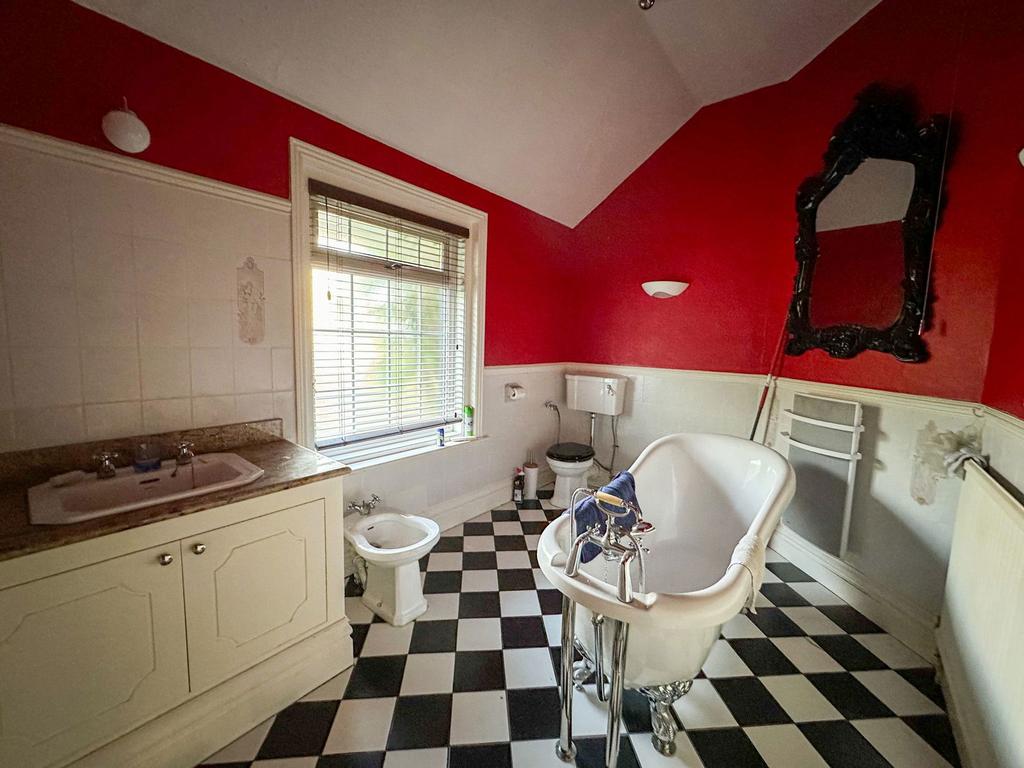 Bedroom 1 can be found on the first floor and is complete with eaves storage and a walk-in bay window. Bedroom 2 is a spacious double bedroom at the back of the property with a pedestal wash hand basin and a private conservatory area. Bedroom 3 is, again, a double bedroom also with a pedestal wash hand basin. The final bedroom is bedroom 4 which is a double and comes complete with a pedestal wash hand basin also. Lastly is the bathroom which comes installed with a wash hand basin with built in cabinet underneath, a low-level WC, a bidet and claw foot roll top bath with shower attachment.