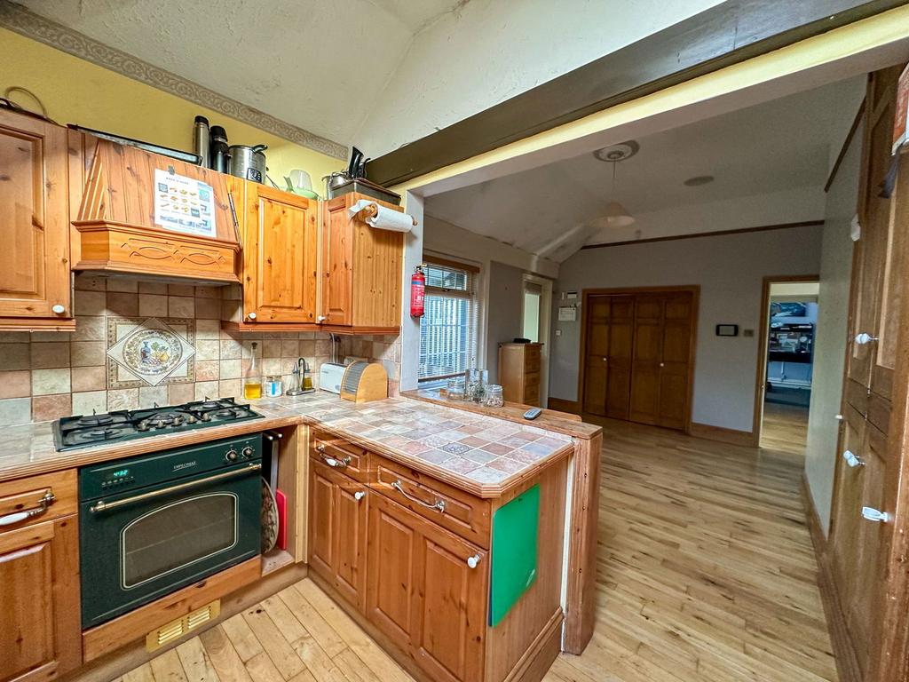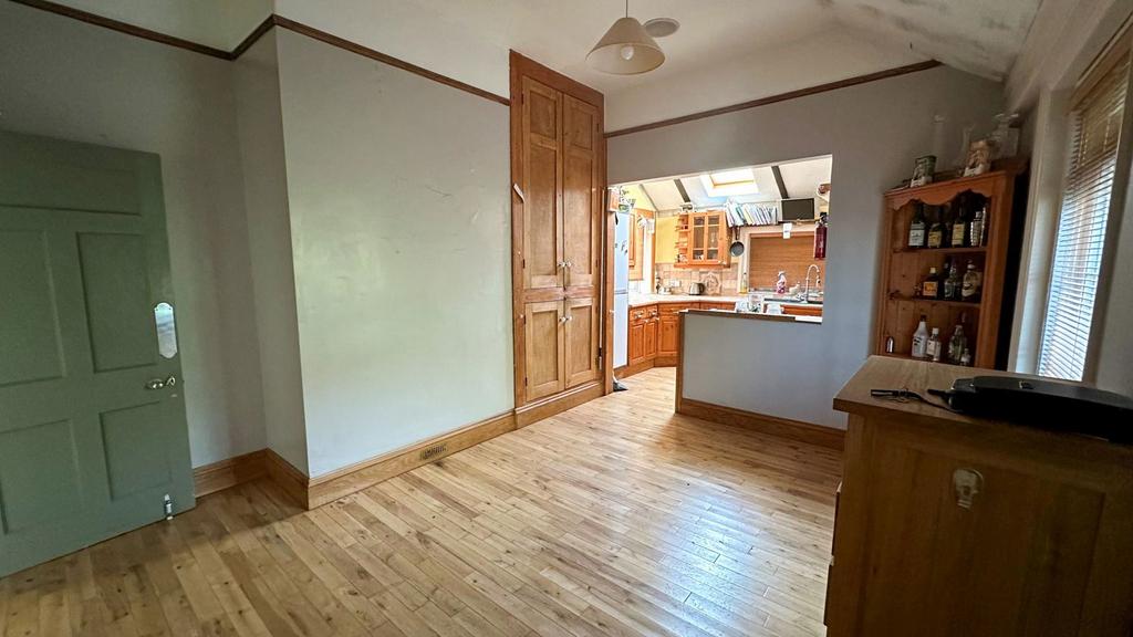 The property is entered through a porch leading into a spacious kitchen/diner which has plenty of built in cupboard space. The kitchen comes complete with wall, base, and drawer units, built in gas oven and inset gas hob with extractor fan over and space for a fridge freezer. From this room you enter a large hallway with stairs up to the first floor and door into the conservatory. The lounge is a spacious room with ornate mantle and double doors leading into the conservatory. The Conservatory is a light and airy space to sit back and relax. Double sliding doors lead out into the garden and a second door leads down some stairs into the sunroom. The sunroom acts a way through between the rear garden, the conservatory, a further ser of stairs into the double garage and the large under house storage area.