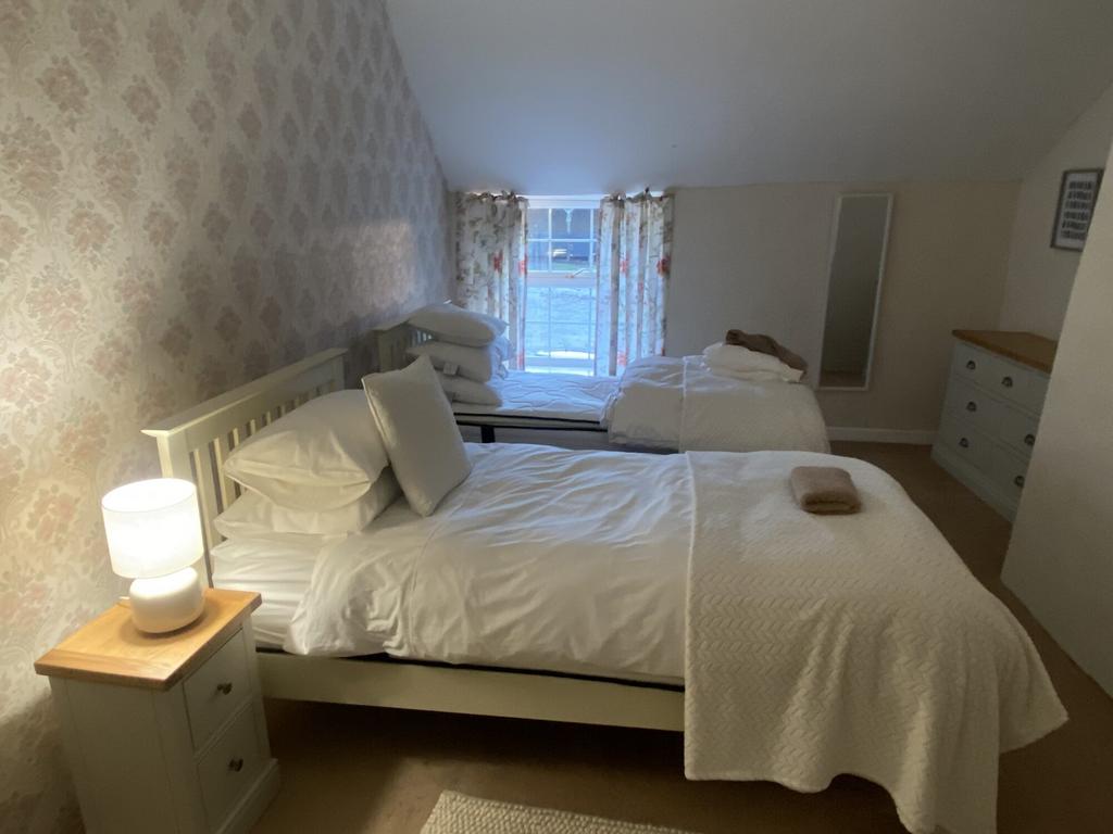 The property is approached from the south through the farm gate, across the concrete yard arriving at the parking area immediately adjacent the front garden wall. On the west side of the farmhouse there is a disused cottage, against which the rear courtyard is bound. The front garden is enclosed by a traditional stone wall and is largely down to lawn.