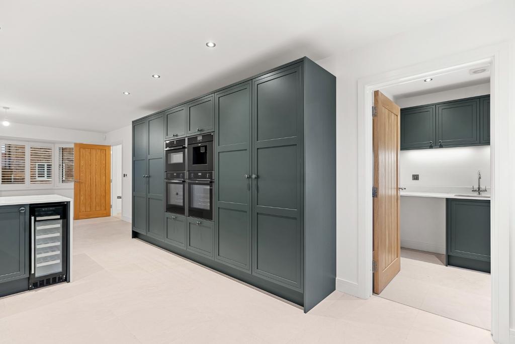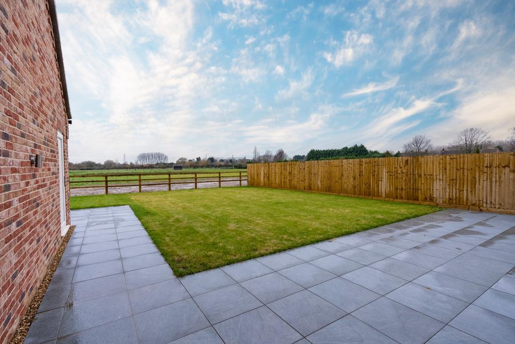 Outside, there is a double width private driveway at the side of the house, which can accommodate several vehicles in front of the detached double garage. Gated access between the house and garage leads to the south facing garden, which has a large entertaining terrace spanning the width of the house and an additional patio at the rear of the garage. The remaining garden is laid to turf and backs onto paddocks, with a post and rail fence defining the boundary.