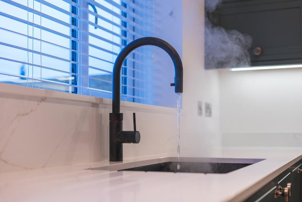 Visitors are welcomed into the spacious reception hall, with a contemporary glass sided staircase rising to the first floor, a useful under stairs storage cupboard and a door into the ground floor cloakroom. The main family reception space is the bay-fronted sitting room, with a window seat and double doors opening out to the rear garden. Across the hall, the impressive kitchen/dining room is another superb family space, with a bay window to the front and generous space for a dining table with chairs alongside the fitted kitchen. The kitchen comprises an elegant range of storage units under composite work surfaces, which extend into a breakfast bar, along with an extensive collection of integrated appliances which include a pair of eye-level NEFF ovens, induction hob, combi oven, coffee machine, fridge, freezer, wine chiller and dishwasher. The adjacent utility room offers a further range of storage units, with plumbing/space for a washing machine and tumble drier.