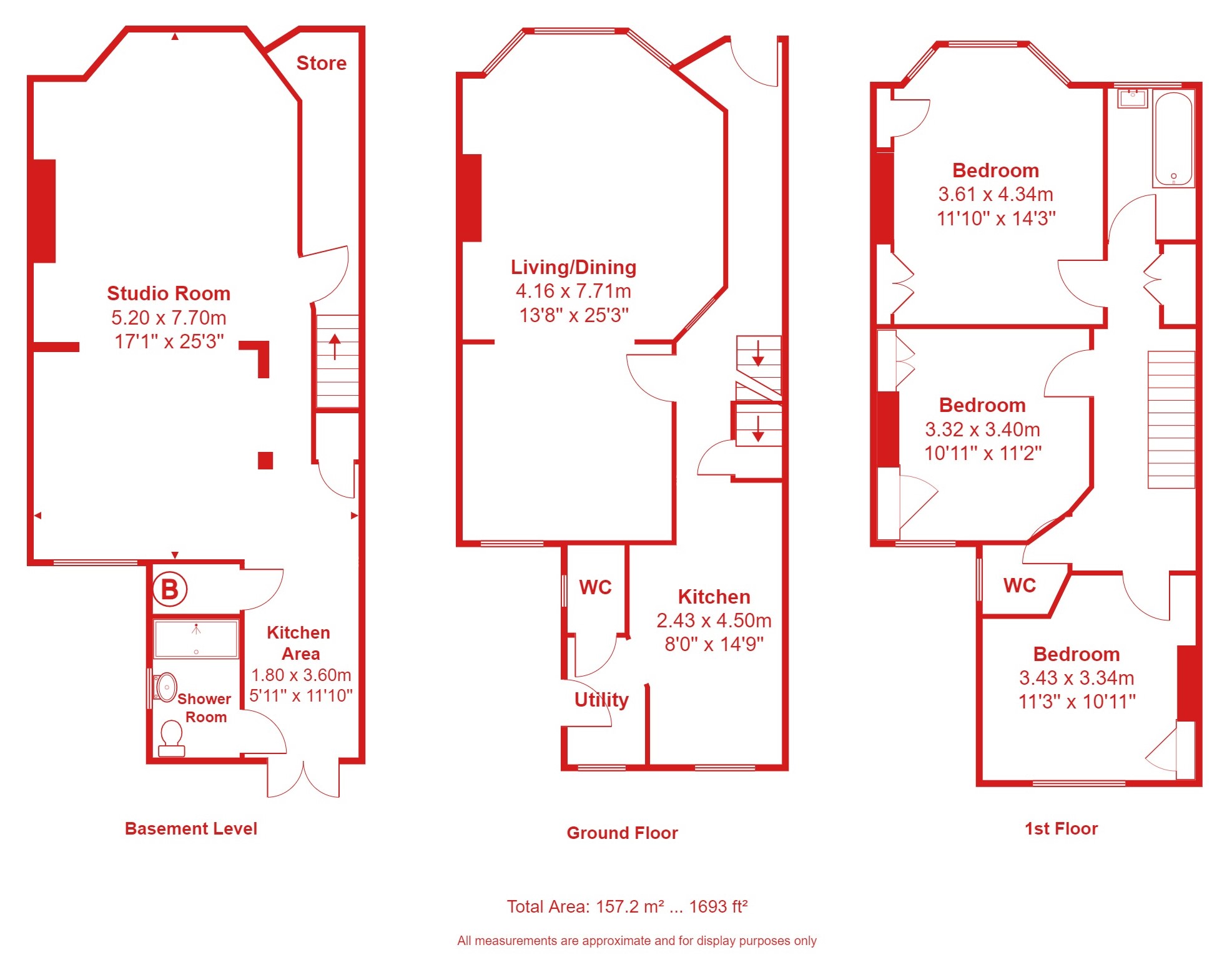 GROUND FLOOR: Entrance Hall * Bright and airy through Living/Dining Room with original fireplaces and pine flooring, double glazed bay windows to front and window rear * Kitchen Area * Utility Area * Cloakroom * door to garden.