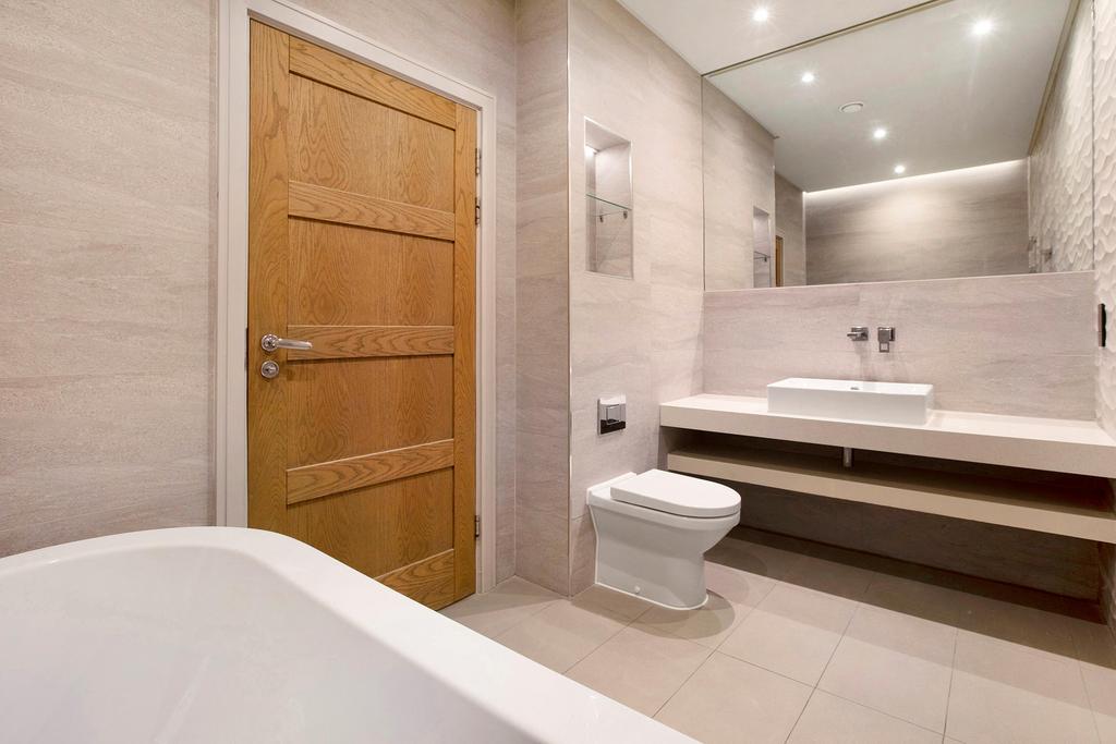 Additionally, there is a family bathroom with a contemporary freestanding bathtub. Both the bathroom and the en suite shower room have attractive styling and modern suites, including low-level WCs, pedestal washbasins and heated chrome towel rails.