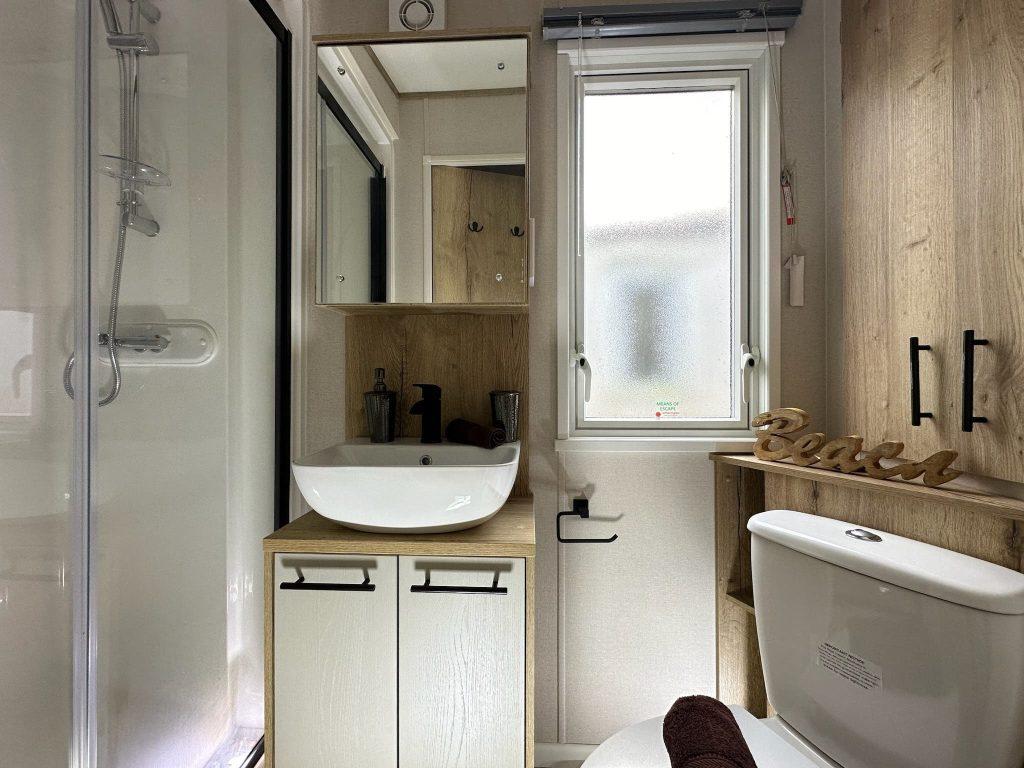 What better way to end a long day than tucking the kids up in their own bedroom. This model has a second bedroom with twin beds and ample storage space for those all-important belongings. The classic style shower room is practical and compact. It includes a shower cubicle, toilet and basin.