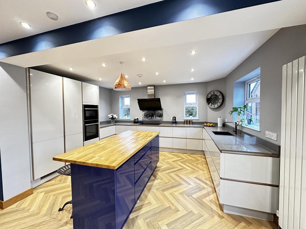 - Open plan kitchen living space with a stunning modern kitchen complete with island and modern appliances