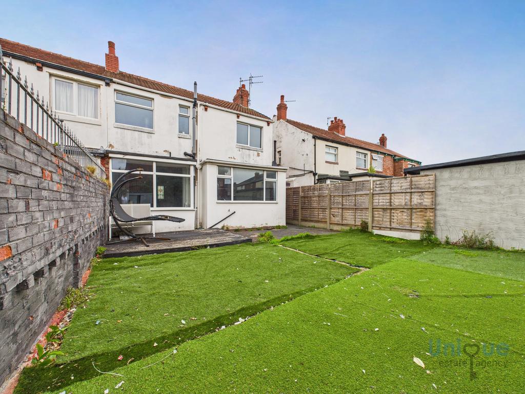 Gate to front leads to a path way and a low maintenance front garden. The rear garden is a good size; patio & artificial laid to lawn area.