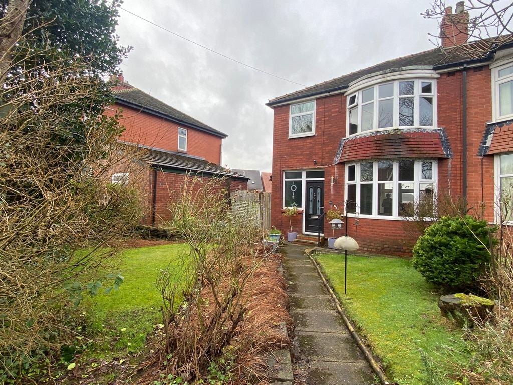 Beautifully presented throughout and ready to move straight in is this three bedroom semi detached property. Ideally suited to the young and growing family the property is within easy access of excellent local schools, public transport links and only a short drive to the Northwest motorway network. Internally this family home comprises of entrance hallway, lounge leading through to the dining area with open plan kitchen/dining providing a superb family area with French doors to the garden, plus a utility room off the kitchen. Off the first floor landing there are three bedrooms, all with fitted furniture and a modern shower room. Externally the property has a mature garden to the front with lawn, trees bushes and flower beds whilst to the back is a low maintenance good size garden with detached single garage and off road parking. The property also benefits from GCH and double glazing.