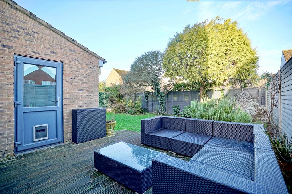 There is an extensive frontage with brick paviour driveway giving provision for up to three vehicles, shaped lawns, ornamental shrubs and trees. The garden is enclosed by mature Laurel hedging with outside lighting. The rear garden is pleasantly arranged with a timber decked seating area, outside tap and lighting, areas of lawn edged in established ornamental trees, shrubs and herbaceous borders, brick constructed planter. The garden is enclosed by a combination of panel fencing and offers a reasonable degree of privacy. There is a double garage with twin up and over doors, power and lighting.