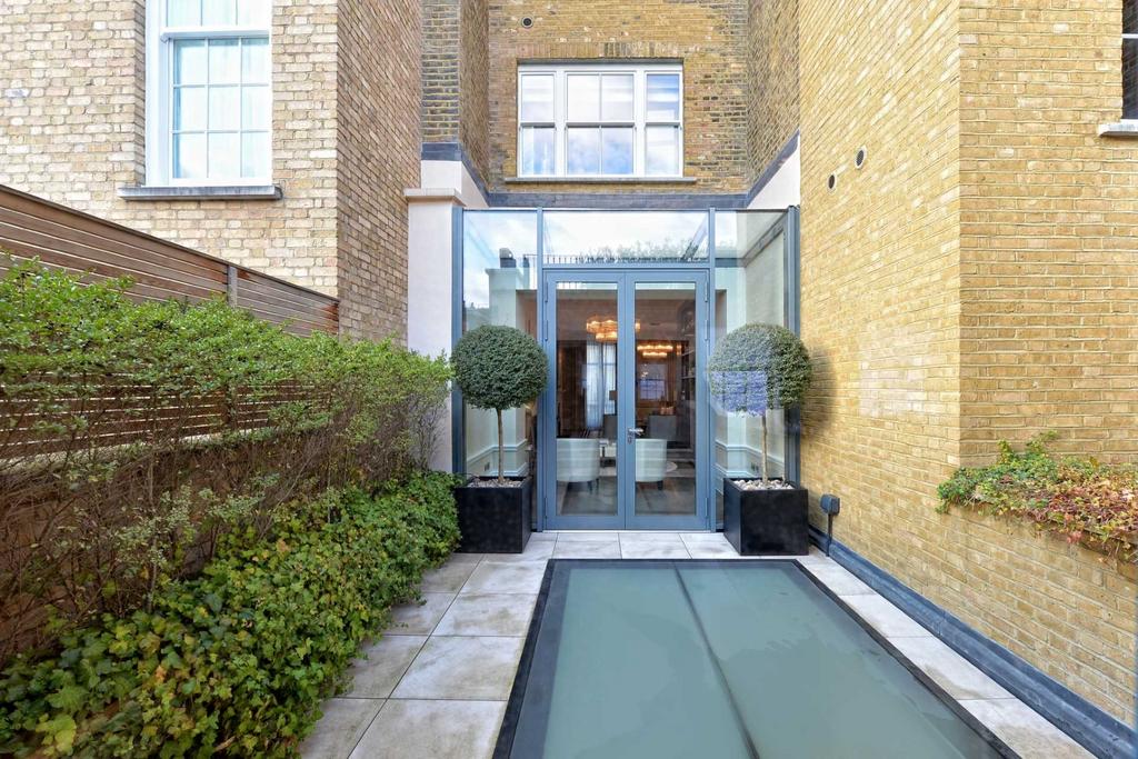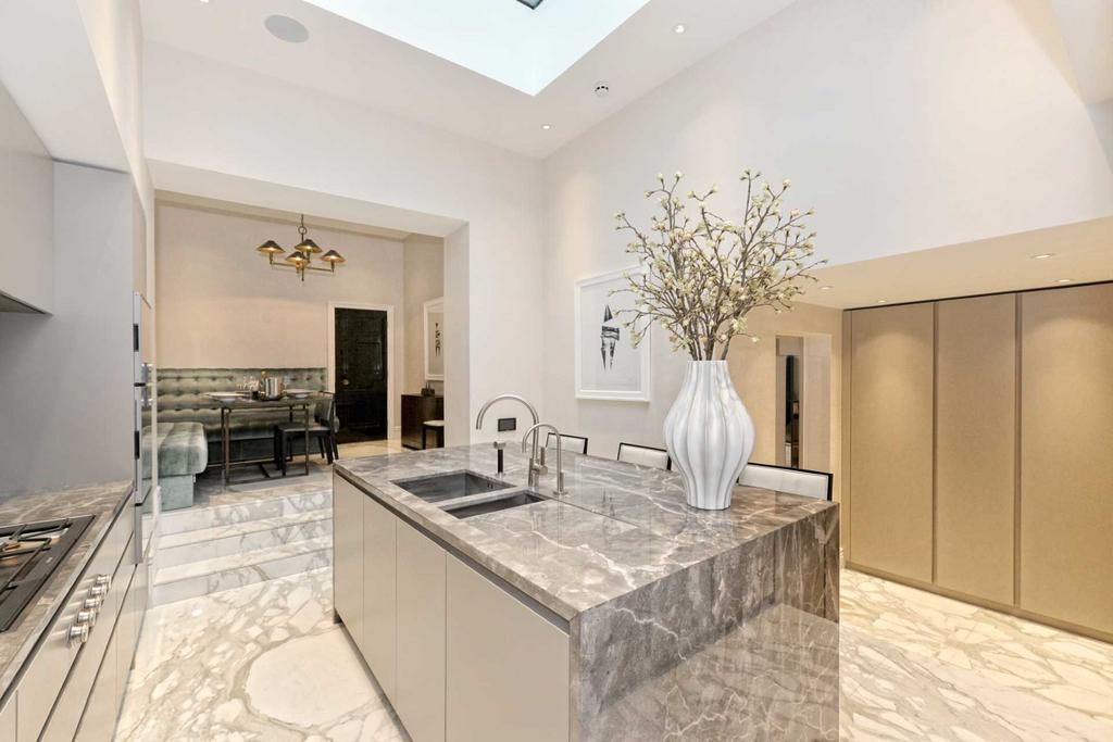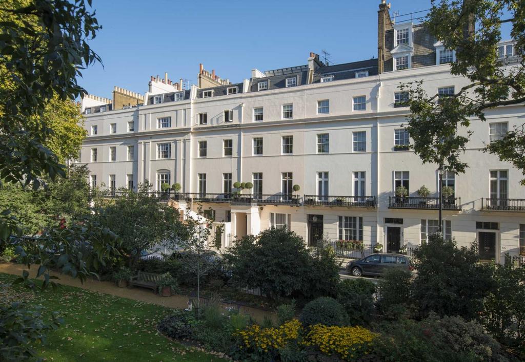 On the ground floor, a grand entrance leads to a formal dining room and a spacious kitchen/breakfast room. The first-floor drawing room has wonderfully high ceilings and opens to a south-facing roof terrace with views over the garden square, making it the perfect spot for entertaining. The master suite on the second floor includes a dressing room and en suite bathroom, while five additional bedrooms also have en suite bathrooms.
