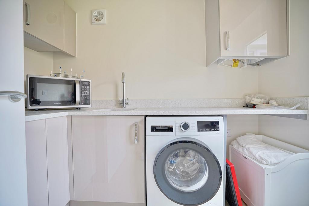 Fitted in a range of base and wall mounted units with complementing Quartz work surfaces and upstands, inset sink unit with mono bloc mixer tap, appliance spaces, recessed lighting, extractor, concealed gas fired central heating boiler serving hot water system and radiators freestanding washing machine, composite door to garden terrace to the rear.
