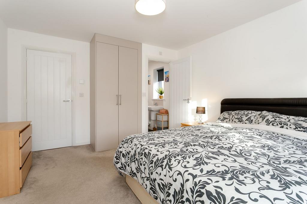With four generously-proportioned double bedrooms and three bathrooms, there is ample space for a growing family or those who require the flexibility of working from home. The living space presents a spacious sitting room for relaxing evenings in front of the television, and the sociable dining kitchen is large enough for a sofa in front of the French doors as well as a family dining table. There is a separate utility room with practical door leading out to the garden, ideal for those with pets or muddy children, and there is a ground floor w/c convenient for guest use.