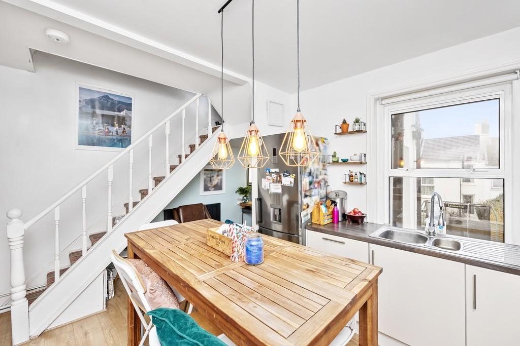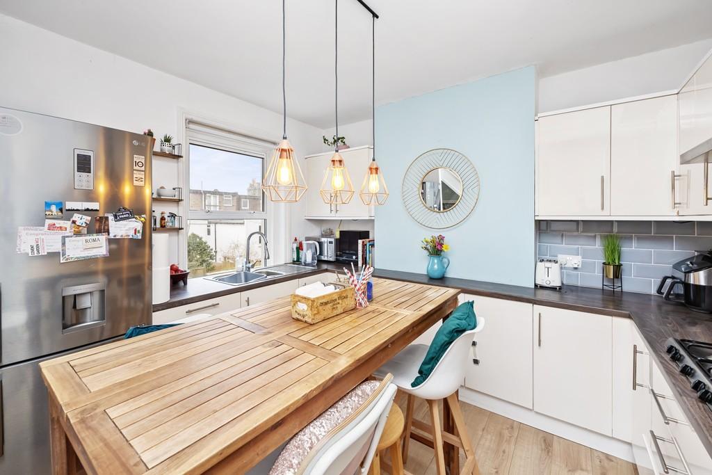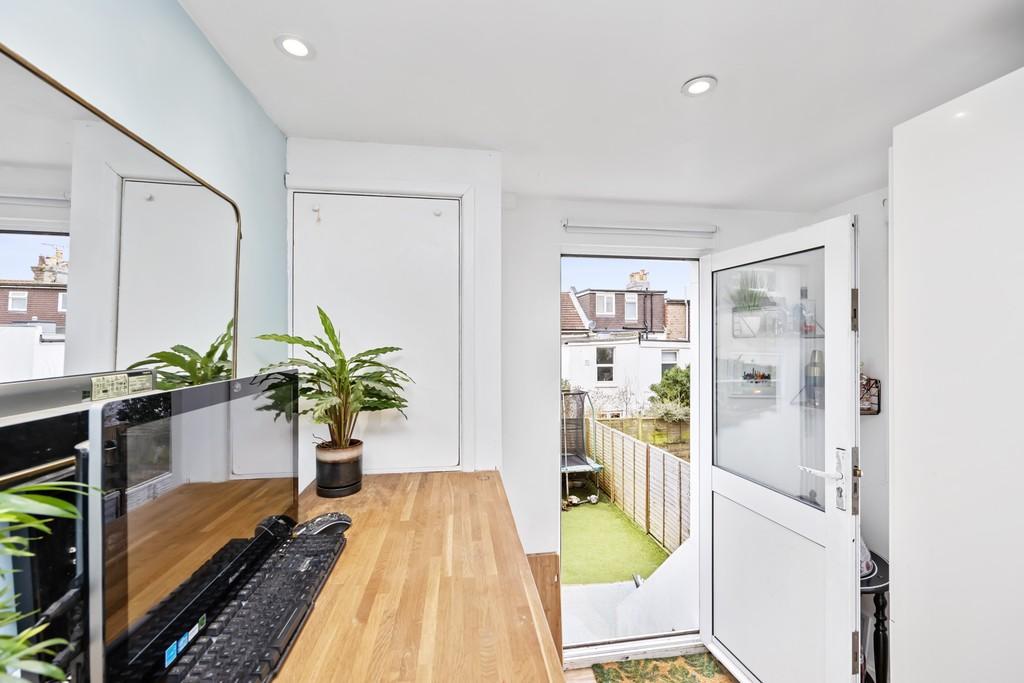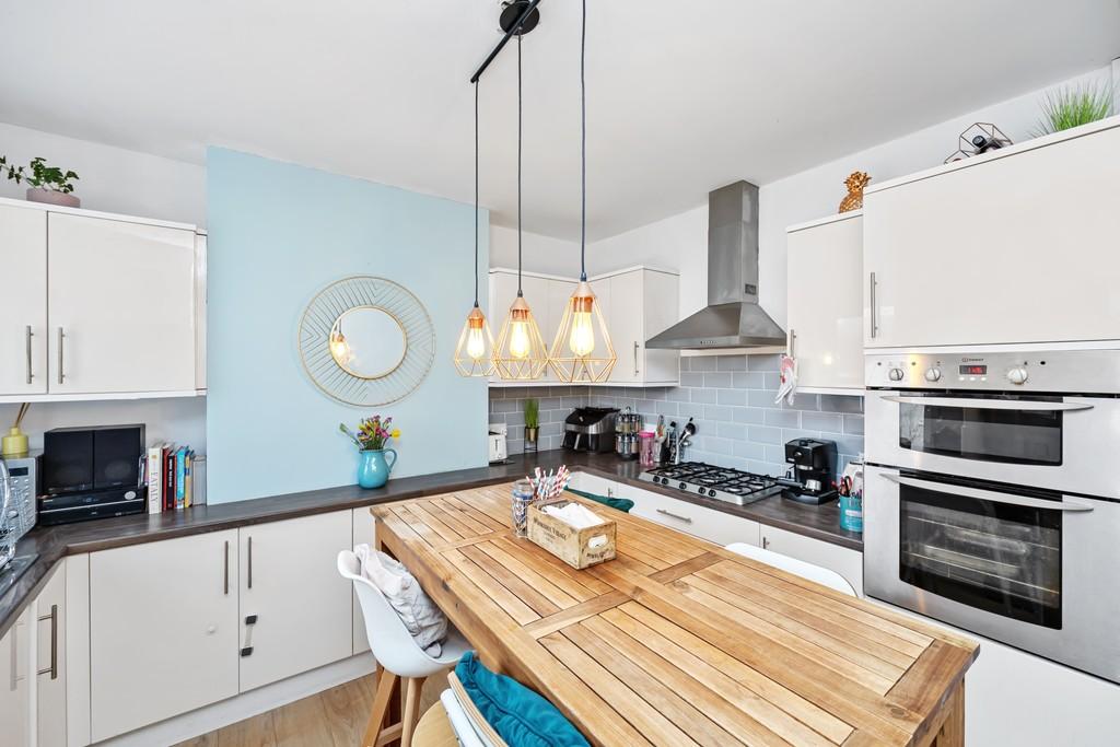 There is a wonderful kitchen/breakfast room with a breakfast bar and space for a work from home set up. Through the kitchen you have a door leading to the garden. The garden itself has a small brick patio area stepping down onto an astroturf garden, with space for a seating area making it a social and family space.