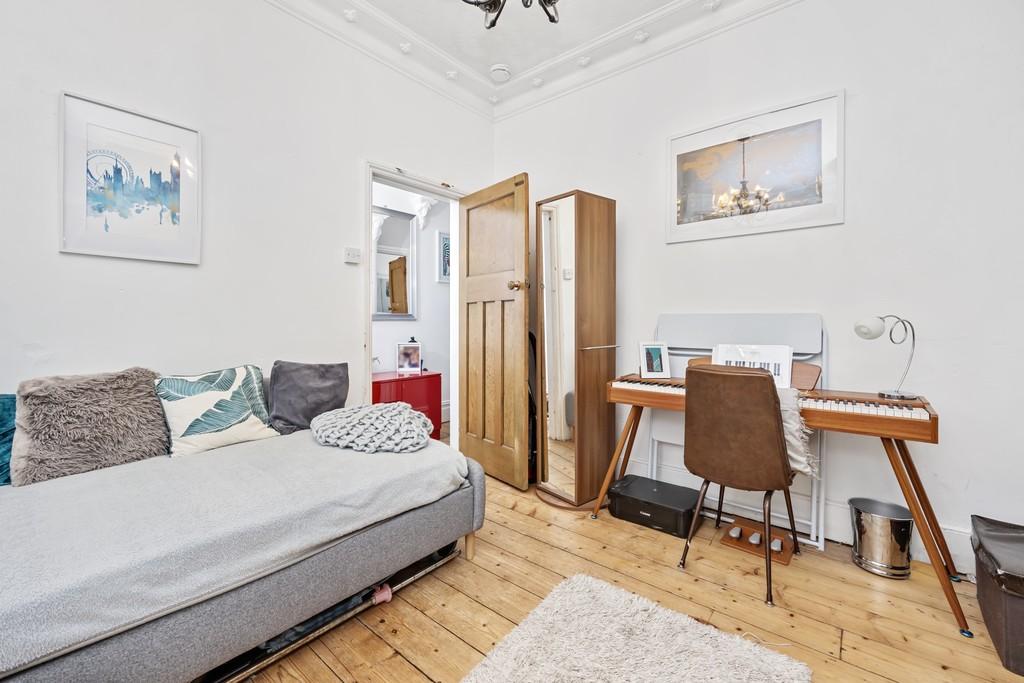 On the raised ground floor, at the front of the property, you have the seconding living space. This could also be used as a fifth bedroom. You also have three double bedrooms, one with views over the garden. The contemporary style family bathroom, with grey metro tiles, has a vanity unit housing a modern white handbasin, a Thermostatic shower with both fixed and hand held shower head over the bath.