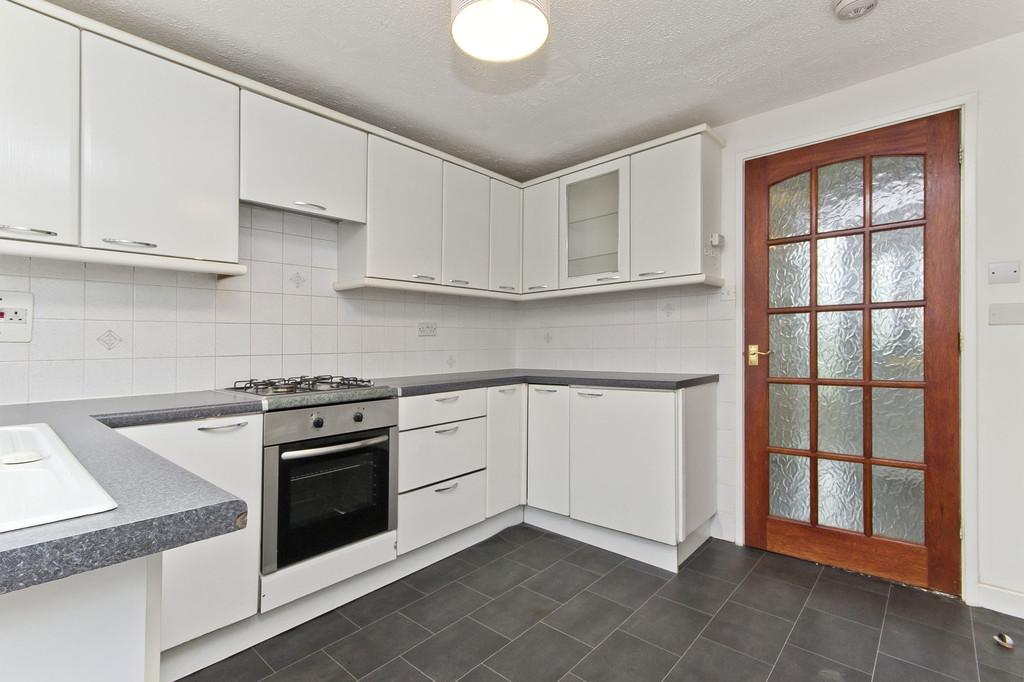 Set back behind a low-maintenance garden, the front door opens into a welcoming hall with a downstairs wc. On your left, you step into a generous living/dining room. Stretching almost the entire depth of the property, this neutrally-decorated reception room offers ample space for various lounge furniture layouts and features south-facing patio doors onto the rear garden. A large built-in storage cupboard also features. Next door, the breakfasting kitchen (with garden access) is also south facing and is fitted with modern white cabinets framed by spacious worktops and white splashback tiling. An electric oven, gas hob and extractor fan are integrated whilst space is provided for an undercounter washing machine.