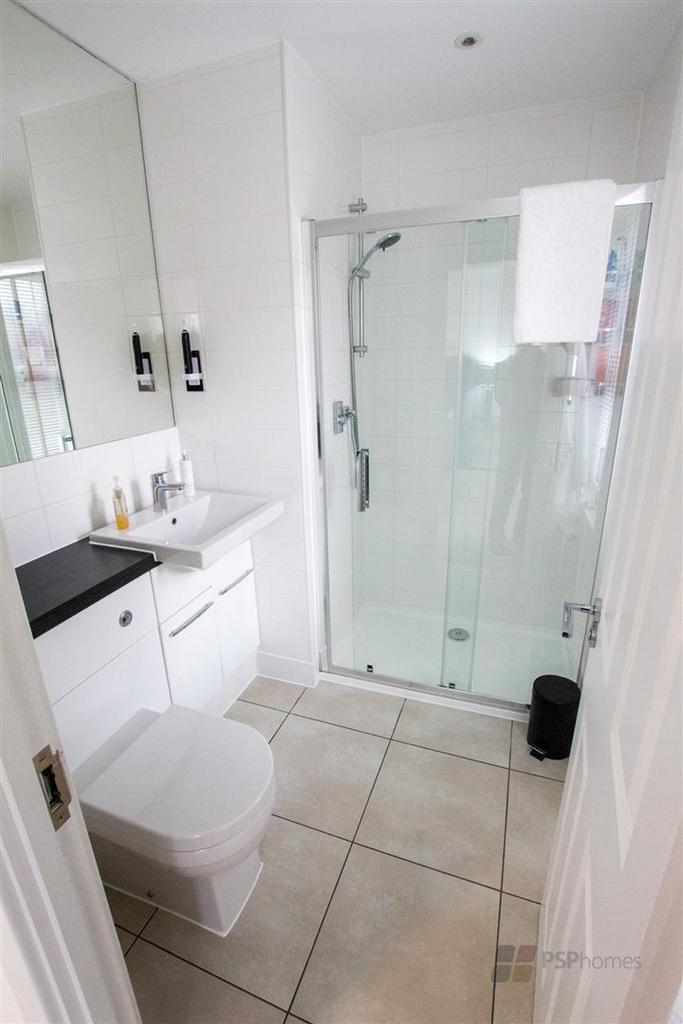 The Second Floor. - The second floor landing also provides a double storage cupboard as well as access to three bedrooms and the shower room. Bedrooms three and four are generous doubles, both having a range of fitted wardrobes. Bedroom five is a good size single room presently being used as an office. These rooms are served by the second floor shower room.