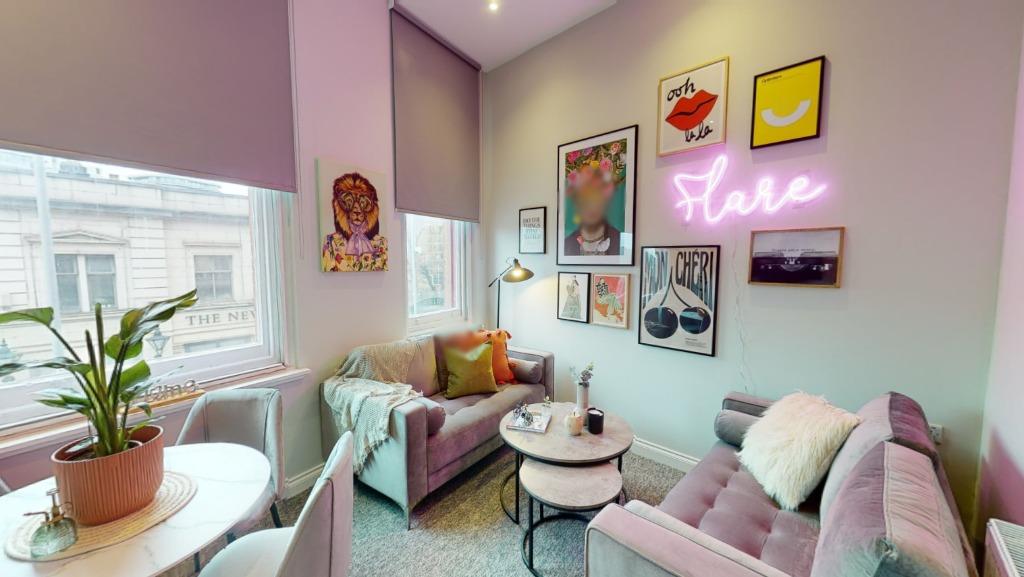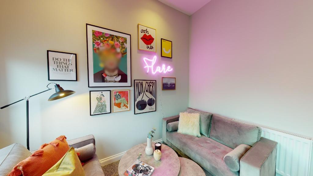 - The lounge area includes a sofa, coffee table, and wall-mounted TV. Ideal for relaxing and socialising with your fellow housemates.