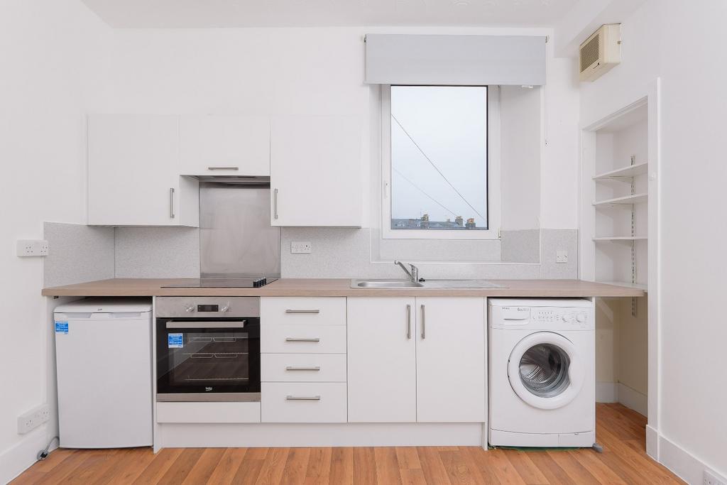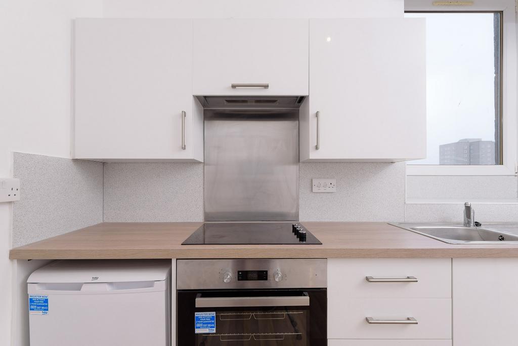 The apartment is entered via a security entrance door into a communal hallway and comprises of a bright and spacious lounge and kitchen on an open plan complemented with laminate flooring and fitted with a range of base and wall units providing good storage, a built-in oven and hob, extractor fan, fridge, and washing machine are also included in the lease. The double bedroom has a built-in wardrobe, shelving units, and a brand-new carpet. Completing the accommodation is an attractive bathroom fitted with a stylish white three-piece suite featuring an over-bath shower, WC, and wash hand basin.