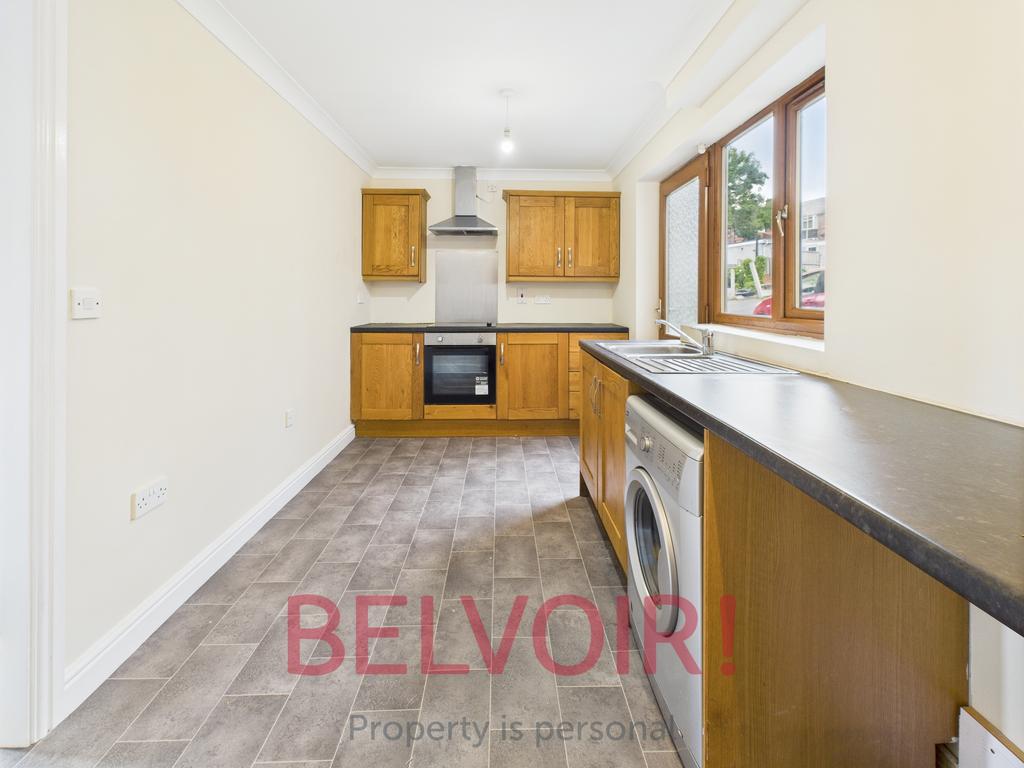 Fitted with wood-effect wall and base units, an integrated electric oven, hob, and extractor hood. Space is provided for an under-counter fridge, freezer, and washing machine. There’s also room for a small dining table. A rear door leads directly to the car park, and a handy downstairs WC is accessed from the kitchen.